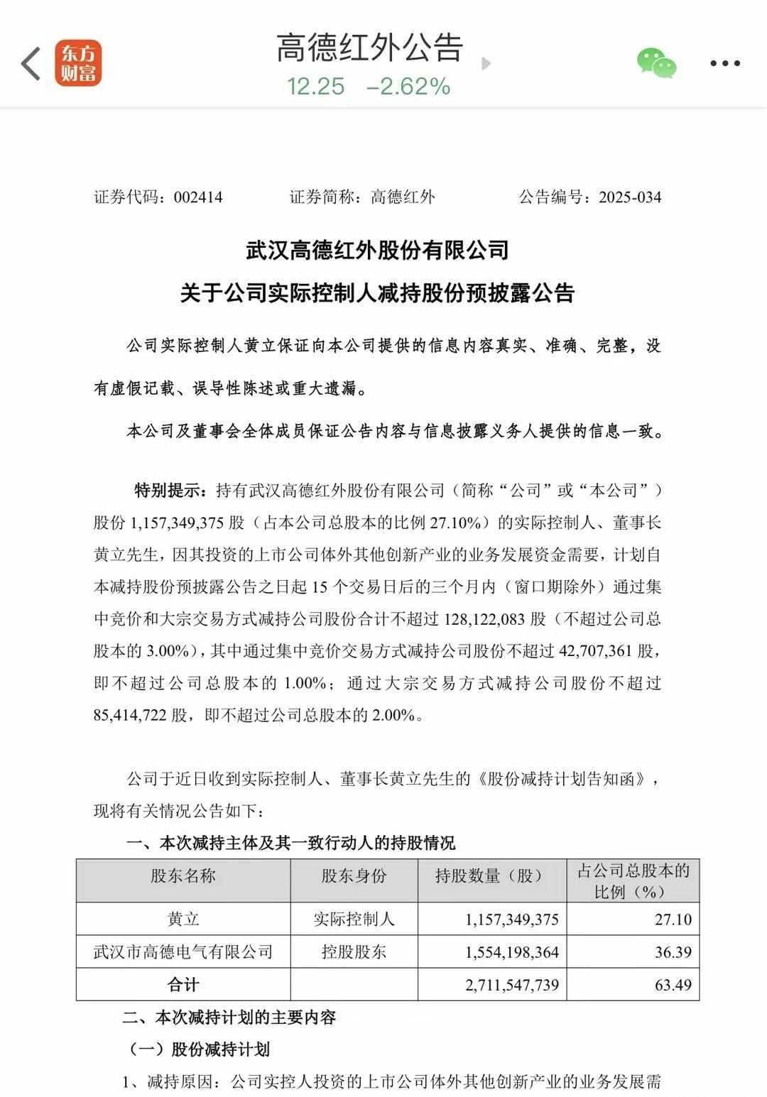 昨晚有20多家公司发布了减持公告:st易事特、燕东微、金凯生科、高德红外、新兴装备、紫光股份、贝瑞基因、速达股份、茂硕电源、湖南白银、人民同泰、梅雁吉祥、康隆达、金桥信息、华海清科、美迪西、力源科技、易事特、明阳科技、朗科智能、立达信、迪普科技、普蕊斯、金桥信息、华平股份….. 它们有St的、有亏损的、有业绩下滑的、有清仓式减持的…… 它们平均涨幅很大的,此时不跑,就对不起列祖列宗! 总结:股东减持往往传递出对公司估值或未来预期的谨慎态度,结合部分公司基本面瑕疵与高位股价背景,投资者需高度警惕潜在回调风险,理性评估持仓合理性,避免盲目持有导致损失。