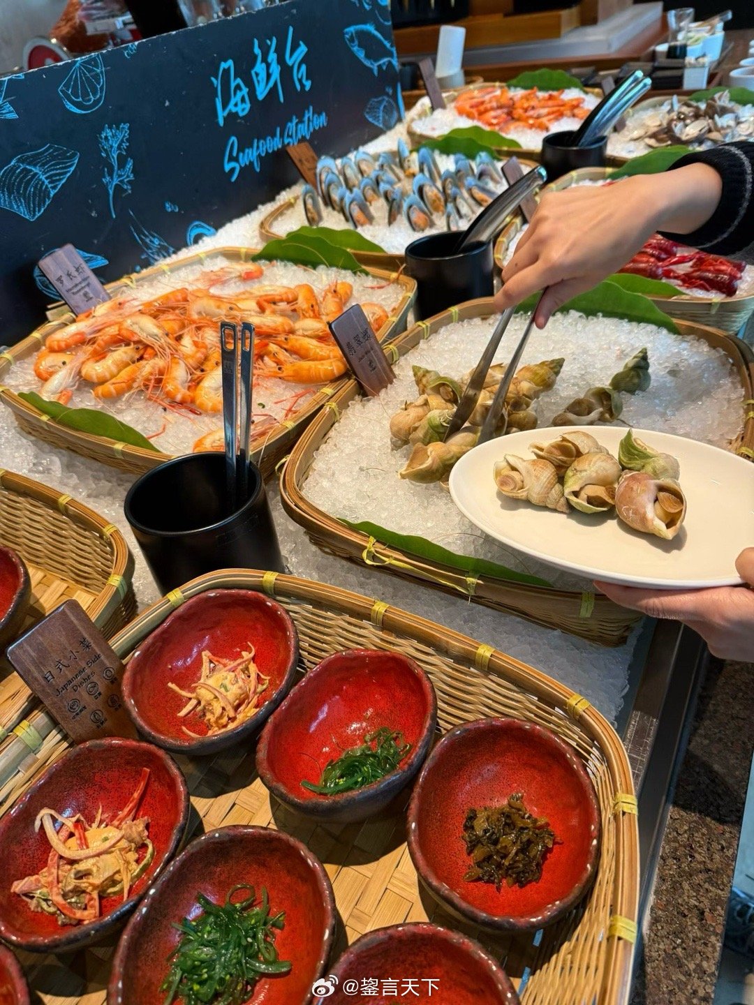 再发昨天午间自助餐漏掉的餐品。