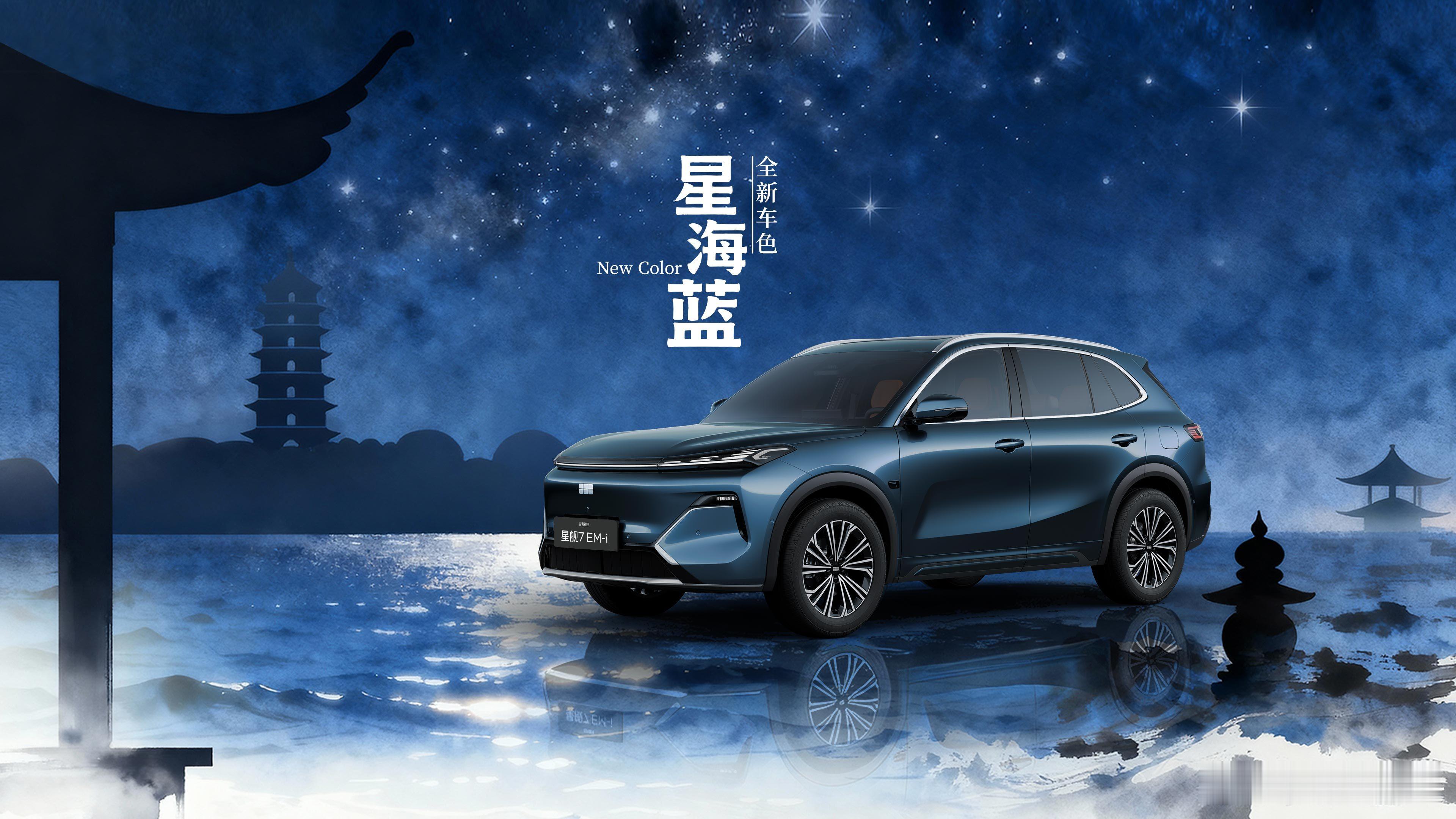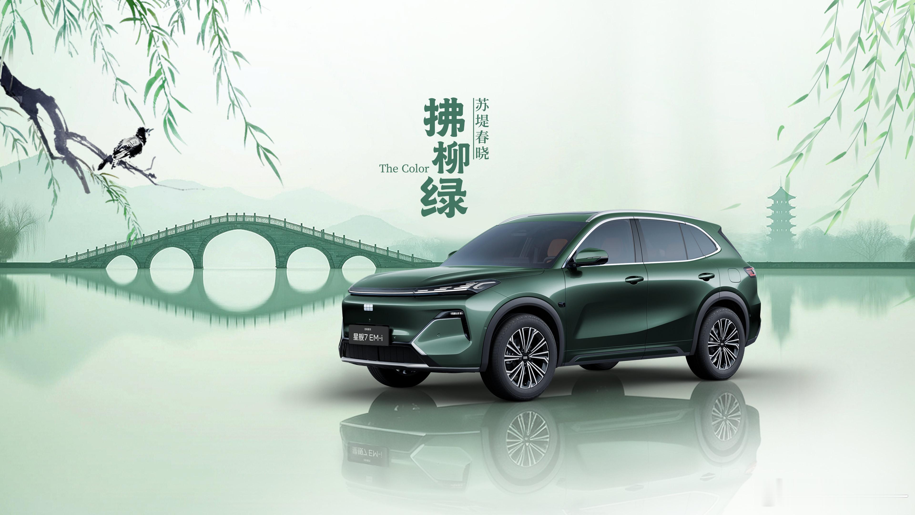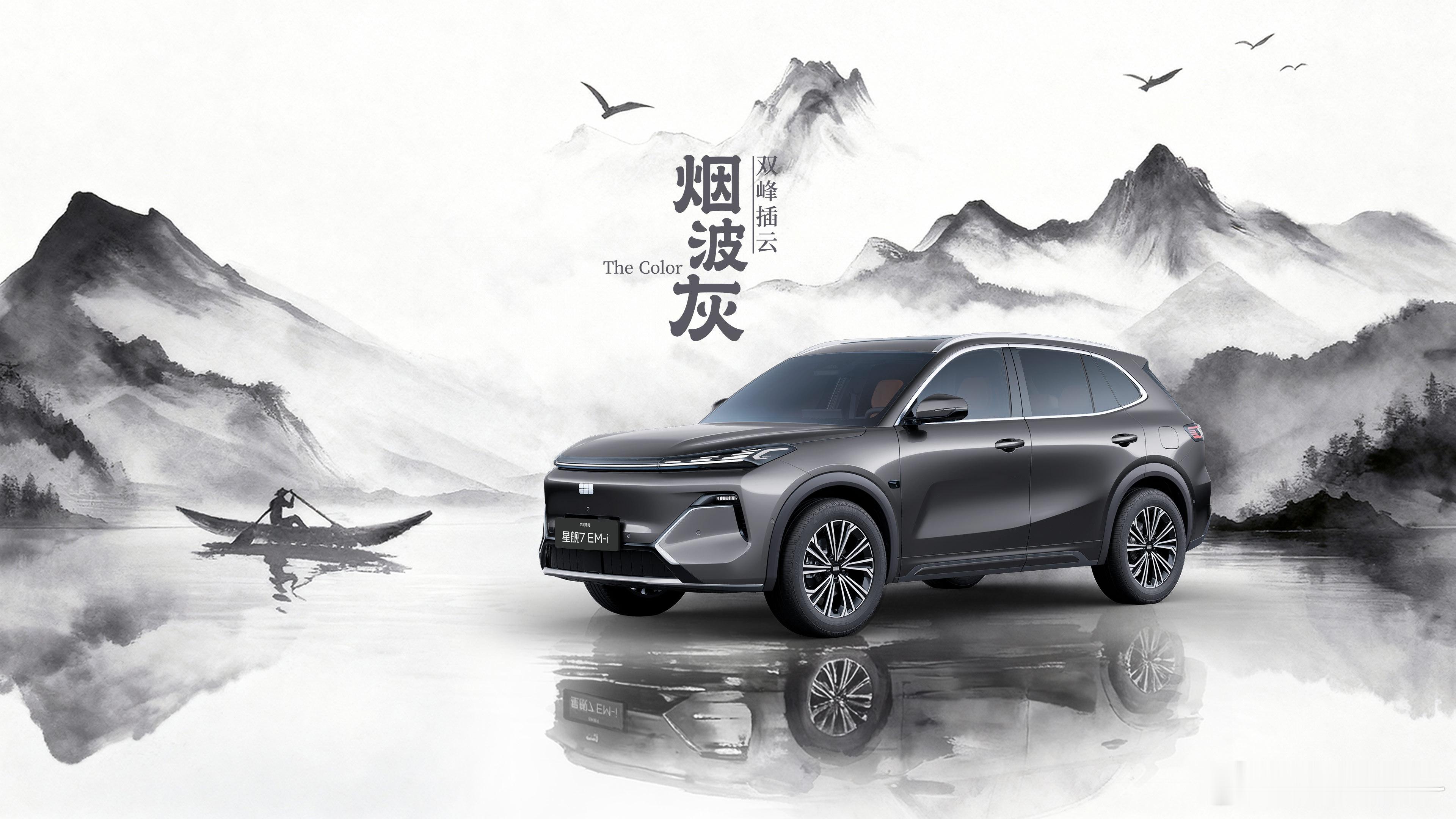 2026款吉利银河星舰7 EM-i 6款外观配色星海蓝 图1流月银 图2拂柳绿 图3墨影黑 图4烟波灰 图5初雪白 图6