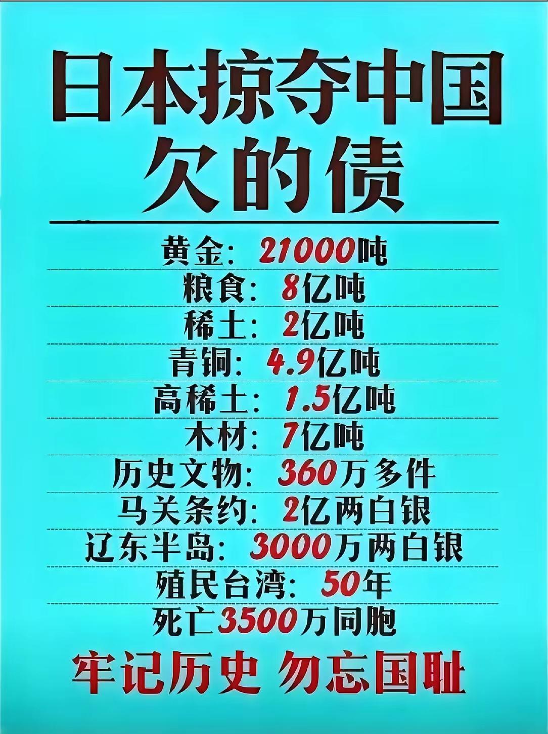 一图知道日本军国主义欠中国的血泪债!铭记历史,勿忘国耻,振兴中华,吾辈当自强,坚决打赢抗日保卫战!✊✊