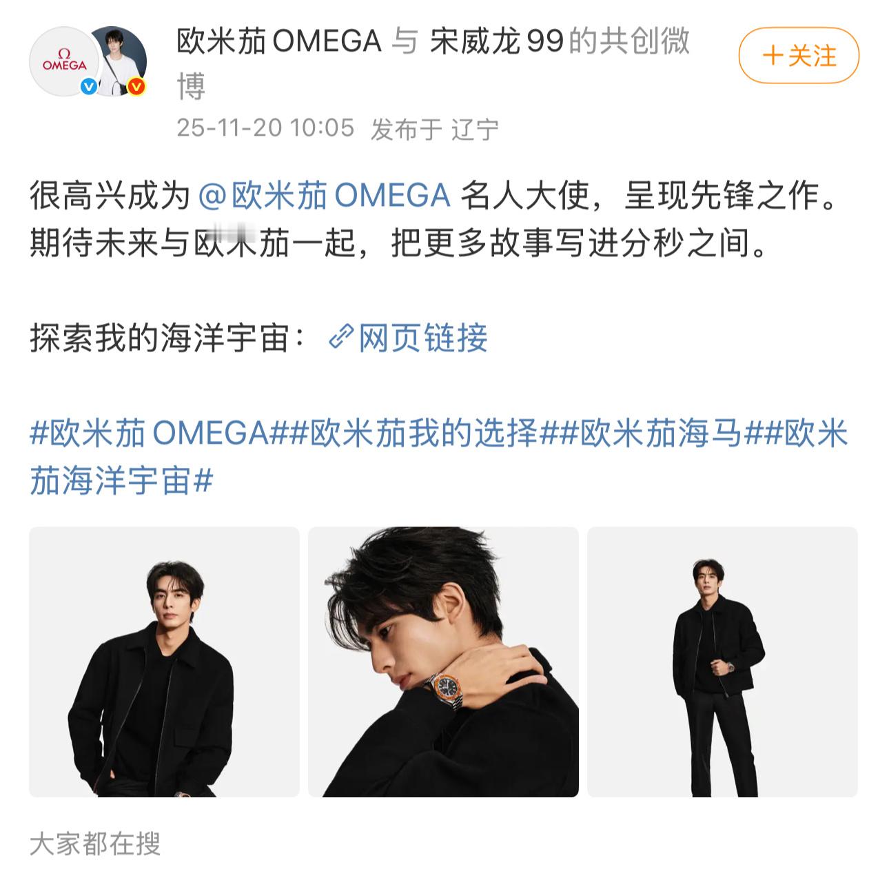 原来今天魏大勋和宋威龙的欧米茄都官宣了。
