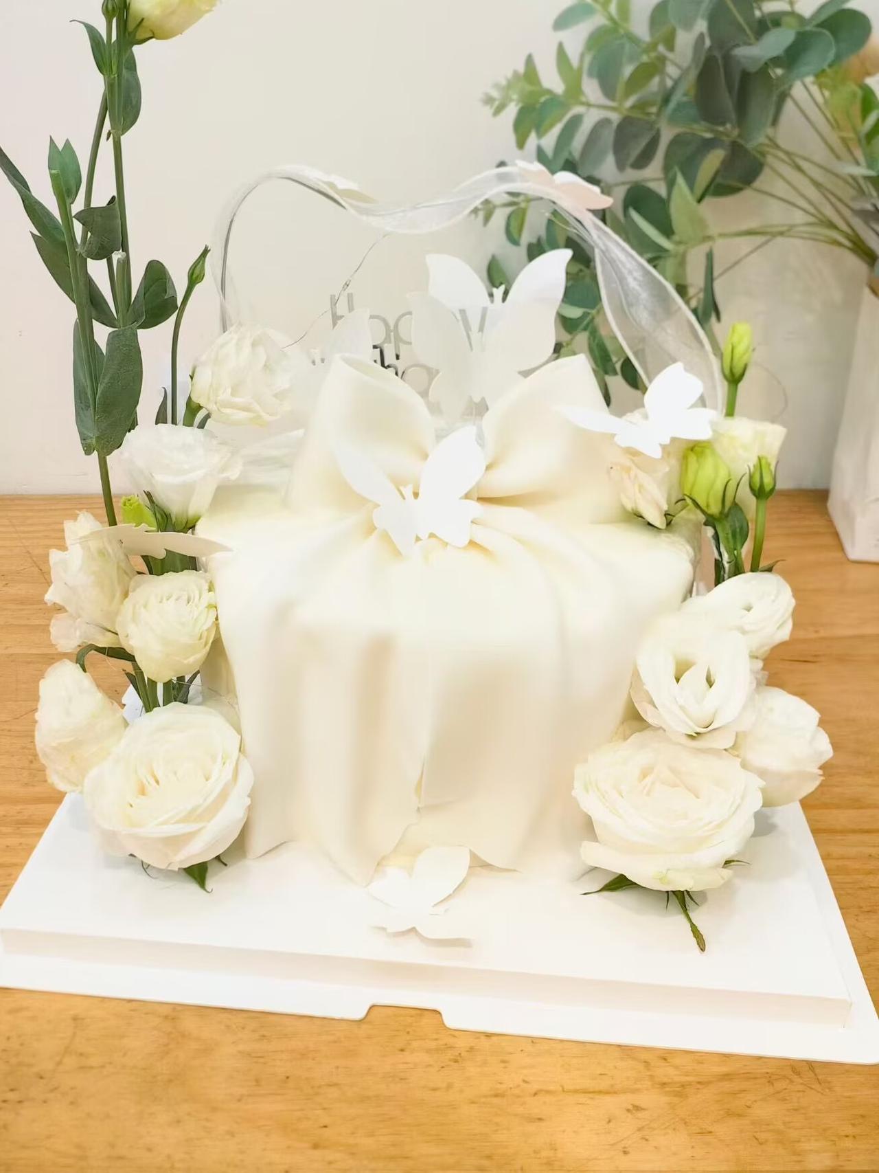 自己做的蛋糕就是好吃!刚出炉那股黄油香裹着奶油甜,往鼻子里钻的时候就知道稳了——蝴蝶结抹得不算太规整,但软乎乎的奶油咬开全是自己调的甜度,不齁人。边上那几朵洋桔梗是早上去花市挑的,新鲜得能掐出水,配着蛋糕吃居然还有点清香味儿。 朋友凑过来咬了一口,眼睛都亮了:“这比外面买的香多了!”我得意地叉了块带蝴蝶装饰的,脆片混着绵密蛋糕体,越嚼越香——自己折腾俩小时,吃的时候全是成就感,连盘子都想舔干净!