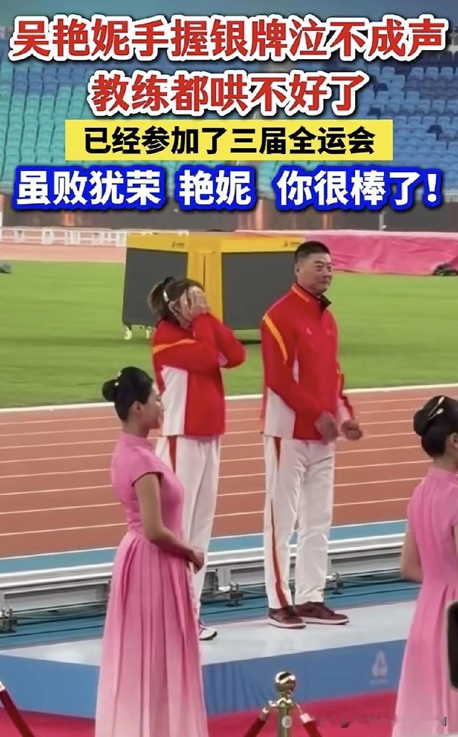 吴艳妮三次全运会,两银一铜。如今28岁的她,下次全运会时早已过了巅峰期,估计很难再夺金牌,难怪这姑娘哭了。她不会假装,现实生活中的吴艳妮大概就是如此。 一个争强好胜、不服输的女孩,拼了三届全运会,每次都以极其微小的差距与金牌失之交臂,这对她心理的打击极大。28岁的她,短跑运动员的黄金时期即将过去,或许无法参加下一届全运会,伤心在所难免,希望大家能理解她。 小吴,虽然你没拿到金牌,但依旧是中国顶级女飞人。铁打的营盘流水的兵,冠军如同鲜花,都有保质期。你的盛花期一过,便是别人的绽放之时。人做任何事都不可能永远第一,因为总有比你更努力的人出现。 你已经做得很好了,别给自己太大压力。竞技体育本就有输有赢,这正是它的魅力所在! 对此大家怎么看?