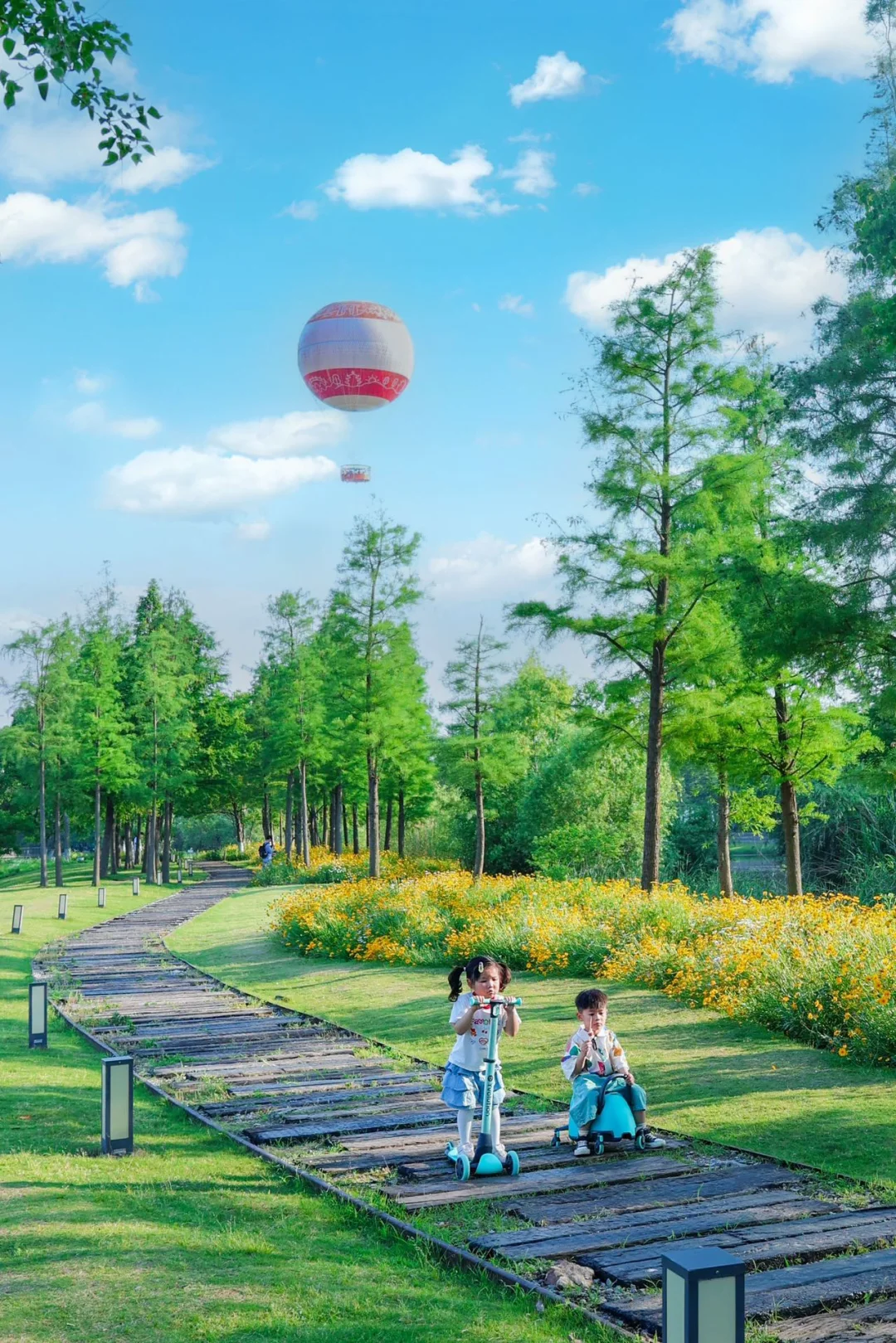 五月的发呆亭开满了小黄花,地铁🚇出行梨园站下,骑行或乘观光车到达“发呆亭”