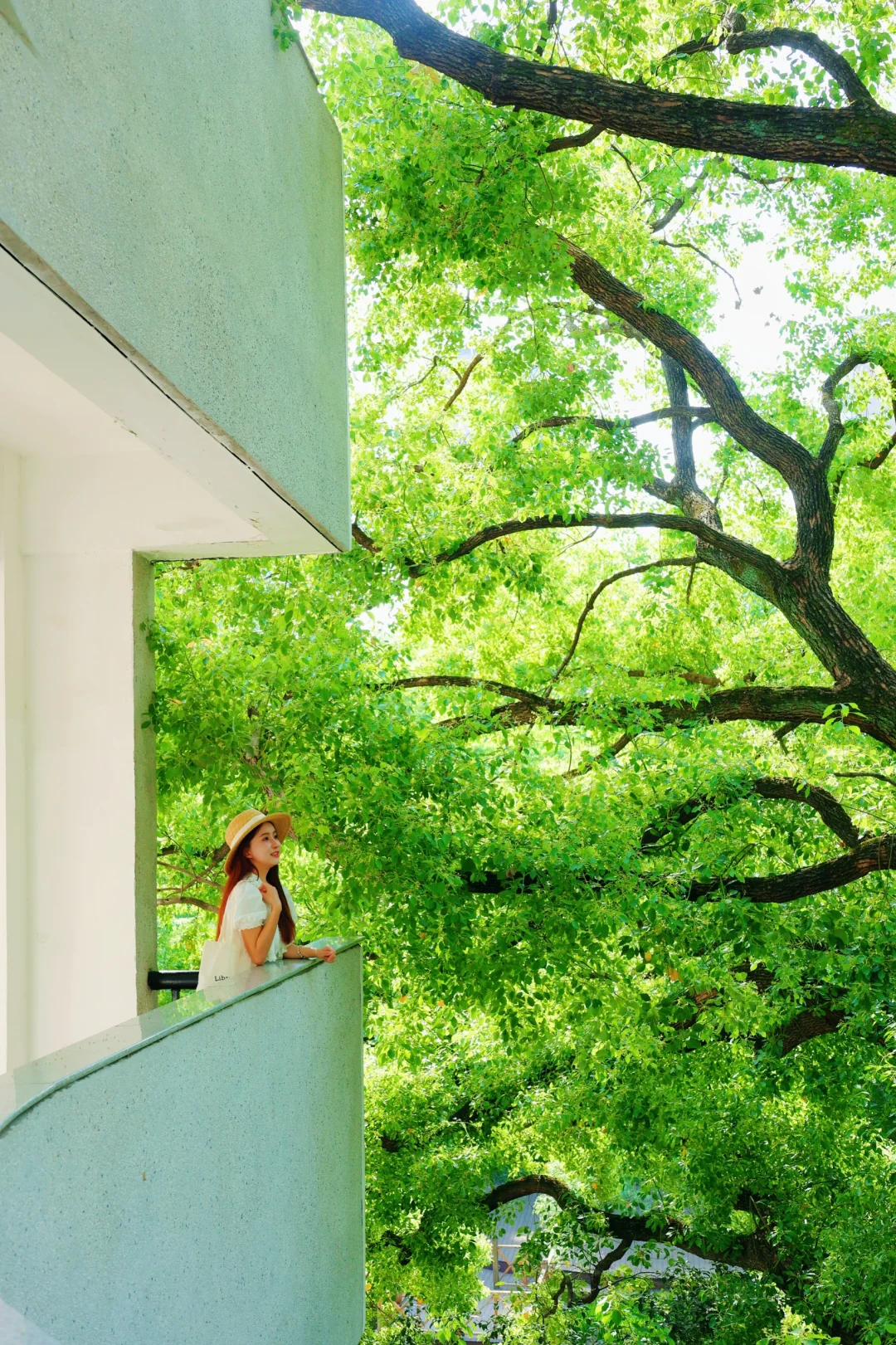 一颗大树🌳长满了整个教学楼,可以拍到日系青春的感觉