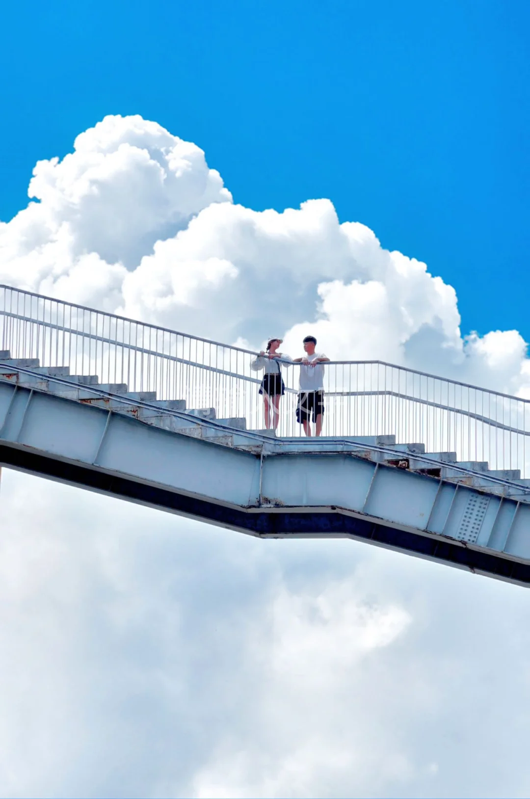 大桥颜色很亮,坐在桥墩处很出片,看似危险,其实是借位拍照🤳!桥下的礁石边也很出片