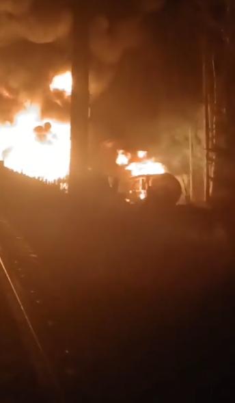 【俄罗斯的火车又着火了。】在彼尔姆边疆区和斯维尔德洛夫斯克州交界处的铁路上,一列货运列车的两节油罐车因不明原因起火。 不排除蓄意破坏的可能性。