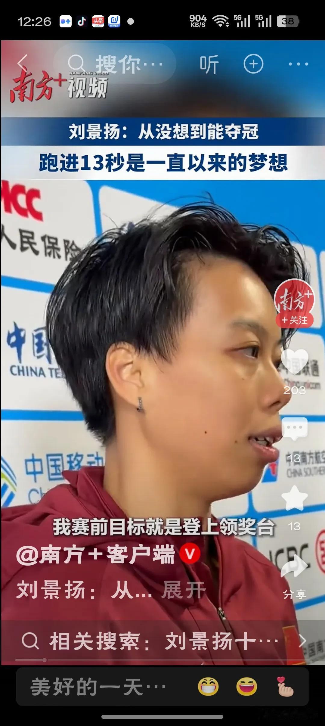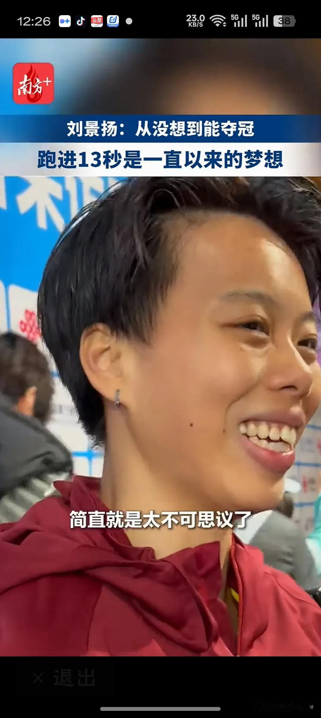 刘景扬:从没想到能夺冠二十载坚守终迎绽放,十二秒八一书写逆袭华章!你不是黑马,是梦想最忠实的践行者。