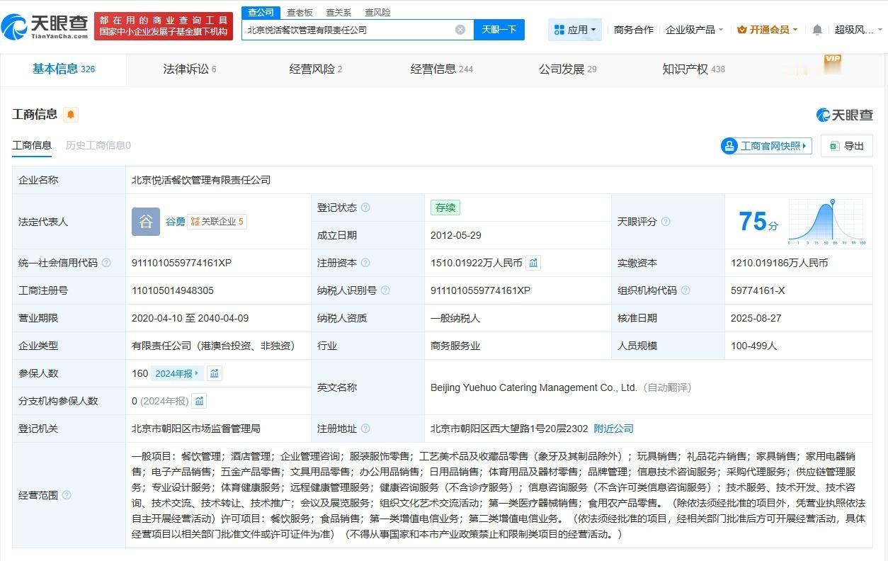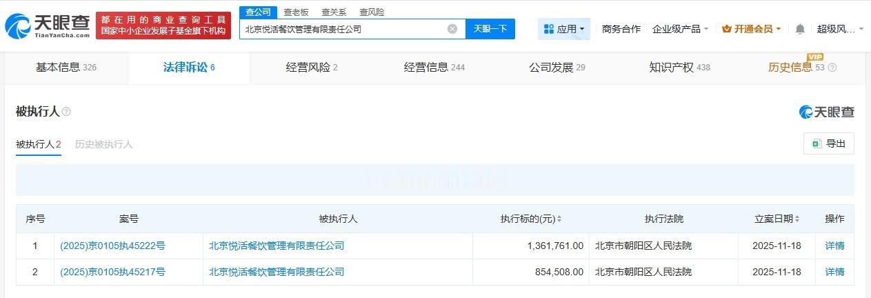 网红酸奶Blueglass成被执行人 Blueglass被执行221万 天眼查天眼风险信息显示,近日,网红酸奶Blueglass关联公司北京悦活餐饮管理有限责任公司新增2条被执行人信息,执行标的合计221万余元,其中一案件被执行人还包括上海悦活餐饮管理有限公司,执行法院均为北京市朝阳区人民法院。 北京悦活餐饮管理有限责任公司成立于2012年5月,法定代表人为谷勇,注册资本约1510万人民币,经营范围包括餐饮管理、酒店管理、企业管理咨询等。股东信息显示,该公司由谷勇、北京悦悦悦信息咨询合伙企业(有限合伙)、斯道(天津)股权投资合伙企业(有限合伙)等共同持股。 天眼查信息: