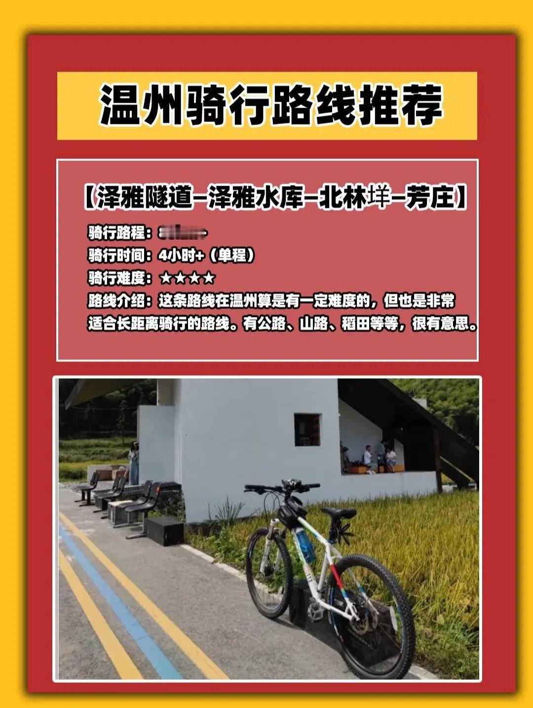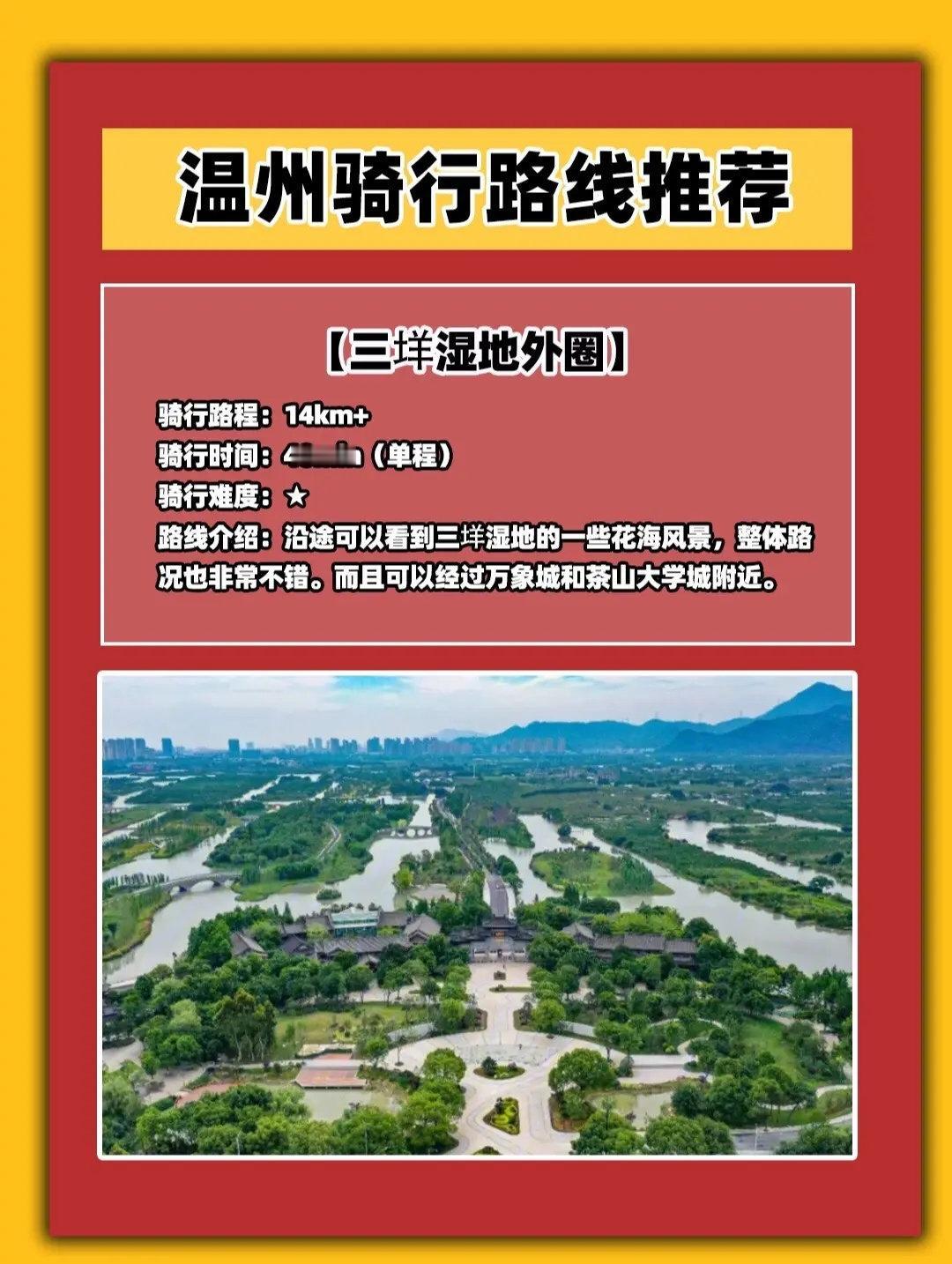 温州骑行路线大赏!三垟湿地外圈14km+,40min逛花海+打卡万象城;七都环岛专业道,3min吹海风(大人小孩都能冲~);80km+泽雅隧道环线,4h+挑战公路山路稻田;沿海灵霓北堤50km+,海风+防晒必做~你最想试试哪条?