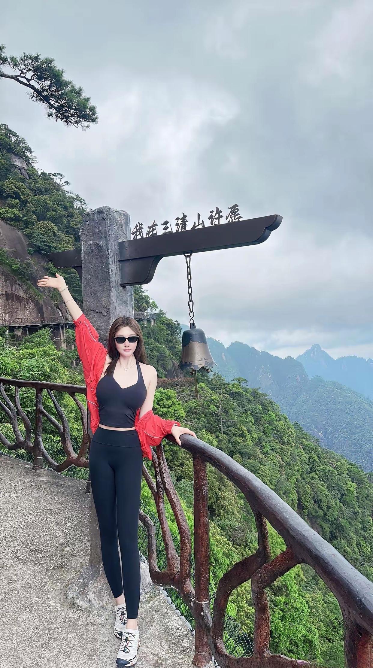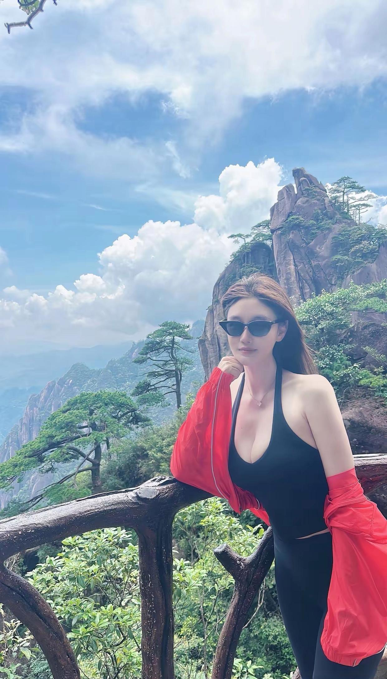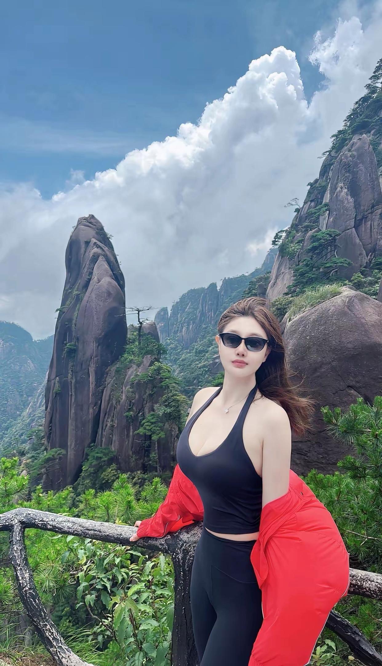 山间少女,红衣飘逸,云海相伴,自由自在。