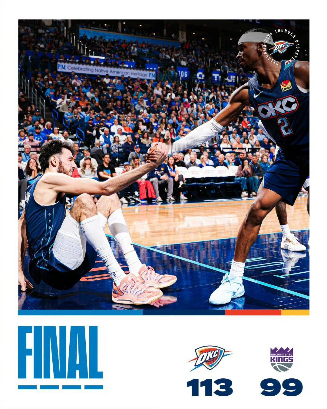 雷霆大胜国王,取得七连胜,赛季15胜1负,继续排名联盟第一!