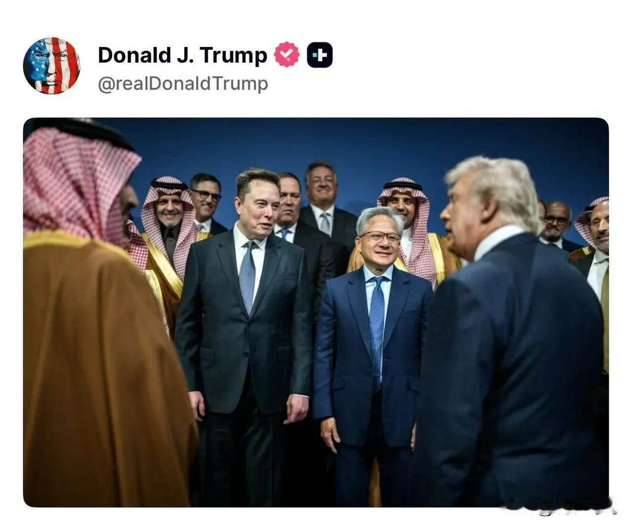 川普分享了一张马斯克在美国和沙特投资论坛的现场照片