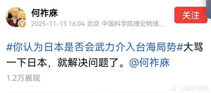 这些领着国家高薪供养的人,却对网友反对日本首相高市早苗介入台湾有事谬论各种阴阳怪气,这都是啥玩意?中国的外交是全世界最理性,最讲明面规矩的国家,如果在这么理性的国家,网友表达点自己的意见,这些人就受不了,那么他们是不是还有这个国家的概念?类似冯教授,把抗战先辈用日伪军叫“抗战分子”,啥玩意?网友表达点愤怒,他们就急得不行,那高市早苗这个支持率最低的首相,靠反华舔美把支持率提升到69%,他们怎么不说?