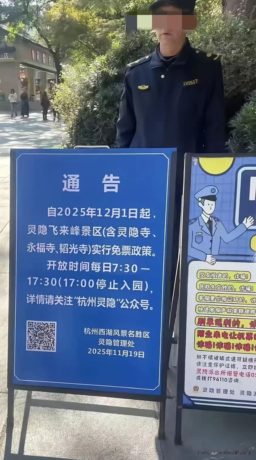 杭州灵隐寺官宣: 12月1日起取消75元门票 实行免费开放,游客只需提前一天实名预约 网友:那我之前去的买票算什么? 灵隐寺 灵隐寺旅游 灵隐寺收费