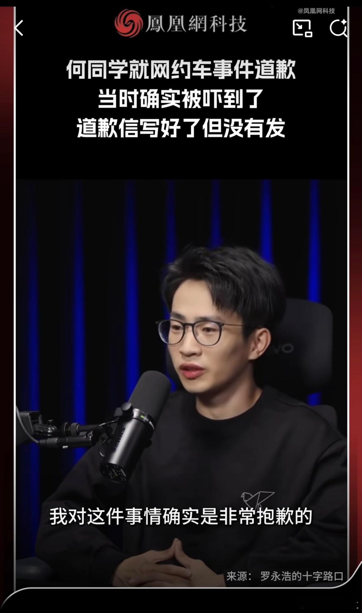 何同学就网约车司机事件道歉:当时确实被吓到了,道歉信写好了没敢发出去。