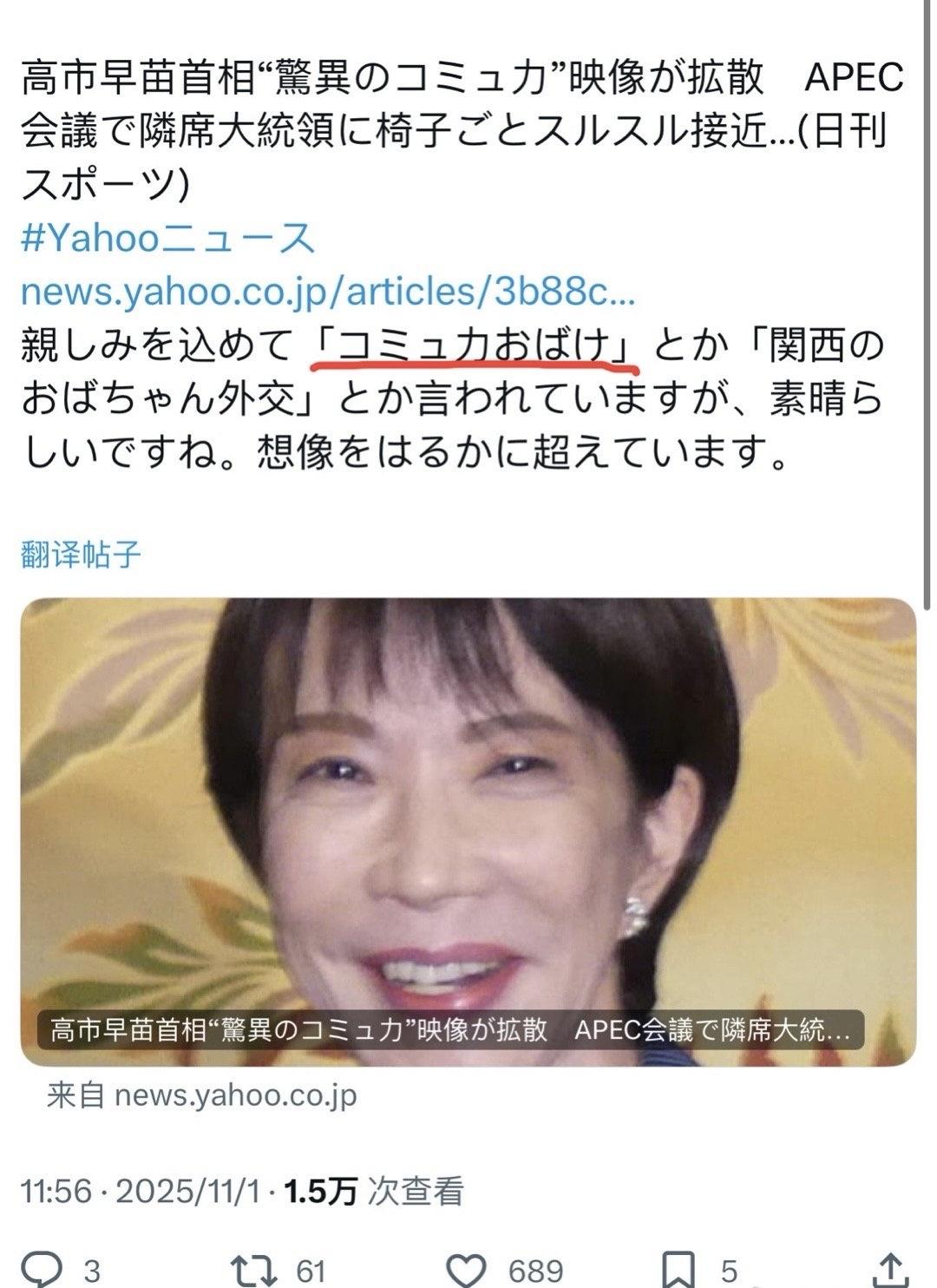 懂日语的朋友可以留心收集日本网友为女首相戴的各种高帽,你们嘲讽的那些峰会尬场面,已经被称颂成“社交狂魔”(コミュ力おばけ)。 此前为她戴上“亚洲救世主”的王冠,现在又宣称世界进入“川高时代”(トラ高時代)。 照此下去,等她下台,得有上万高帽,银河女王,宇宙雌主都不够用了。 论“尬”的功夫,日本当然全球第一。 当然,说日美中“G3”领导世界都算是谦虚的了,毕竟没好意思说G2指日美,不过用“川高时代”找补,也够绝的。
