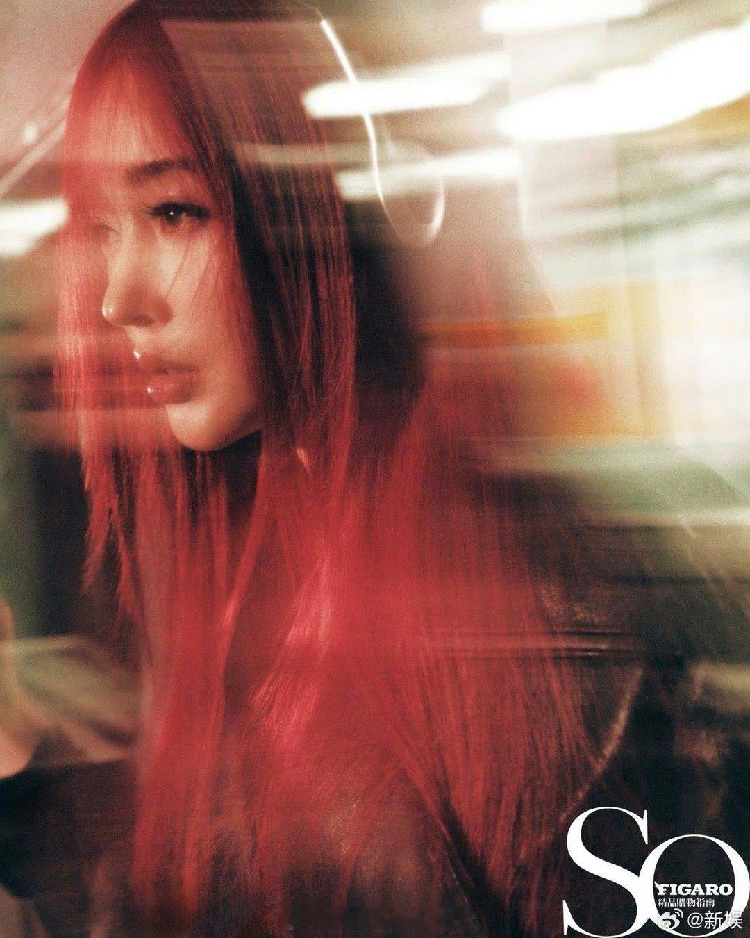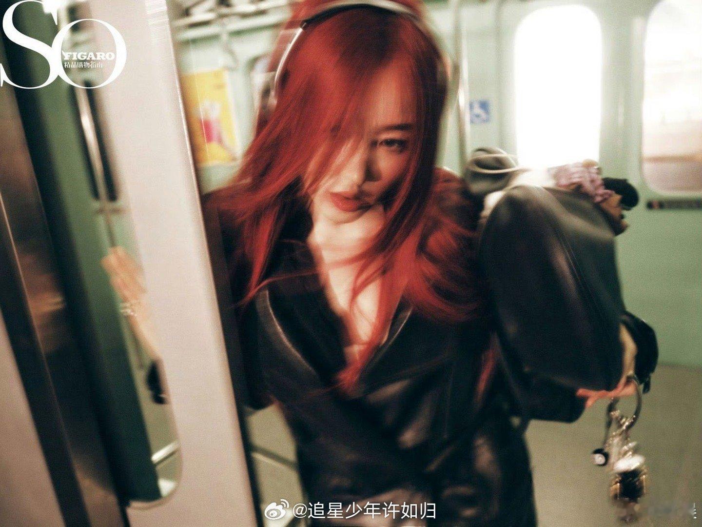 红发白翼的视觉冲击太强烈!张天爱在地铁站中完美驾驭暗黑童话风,展现多元时尚可能性。
