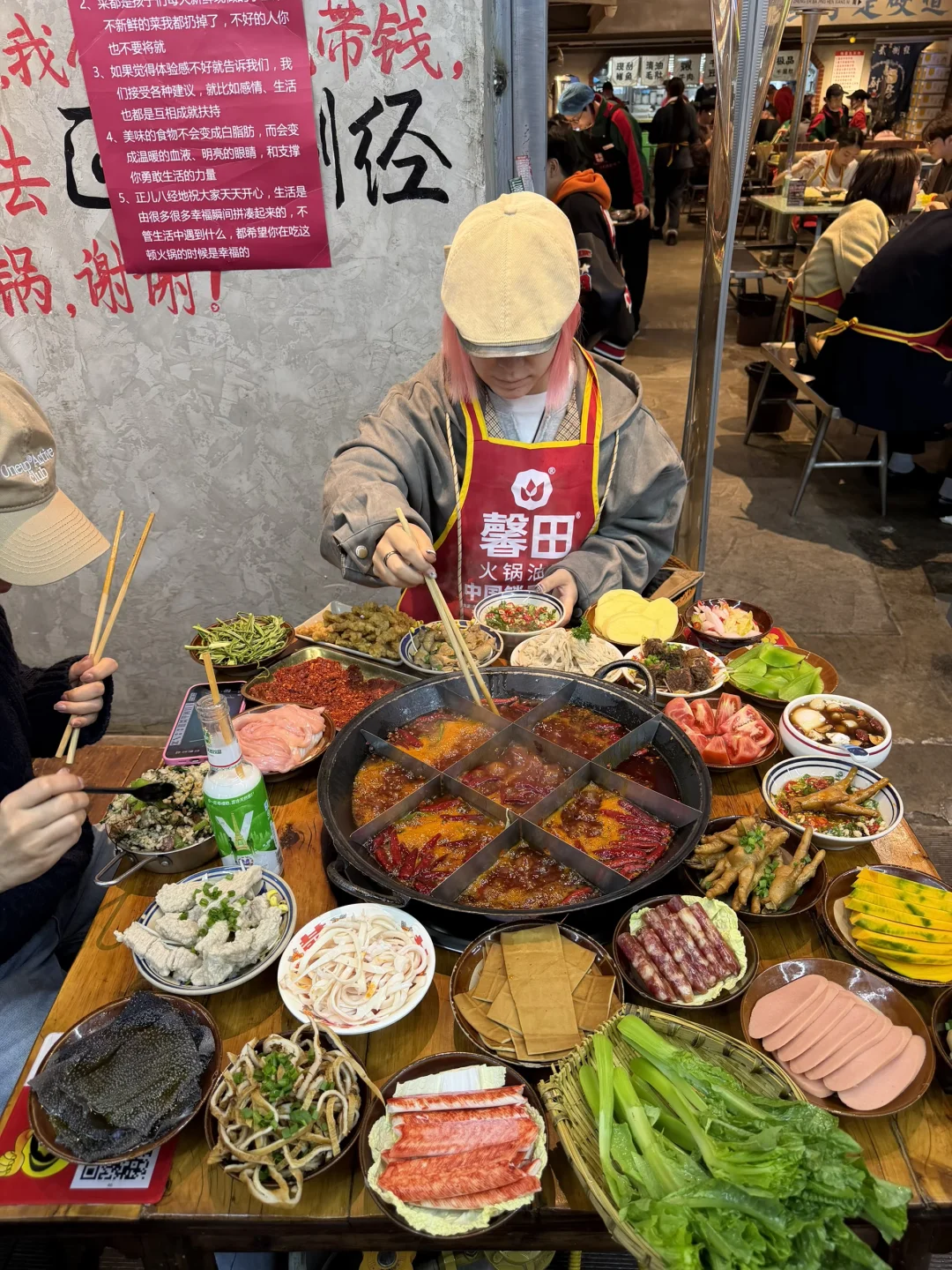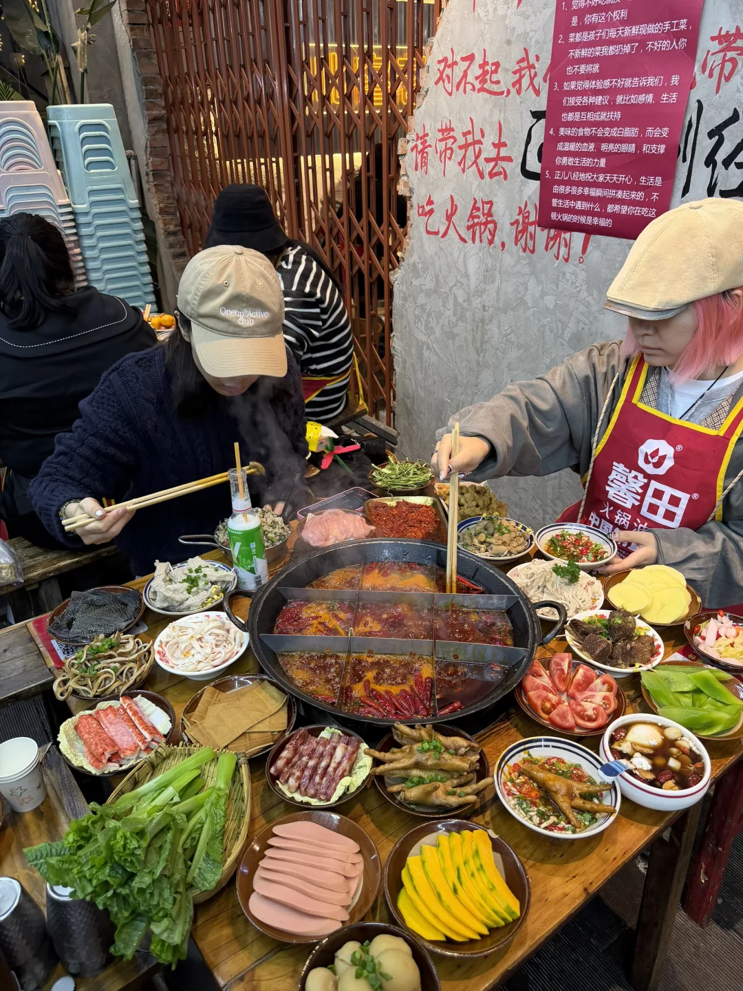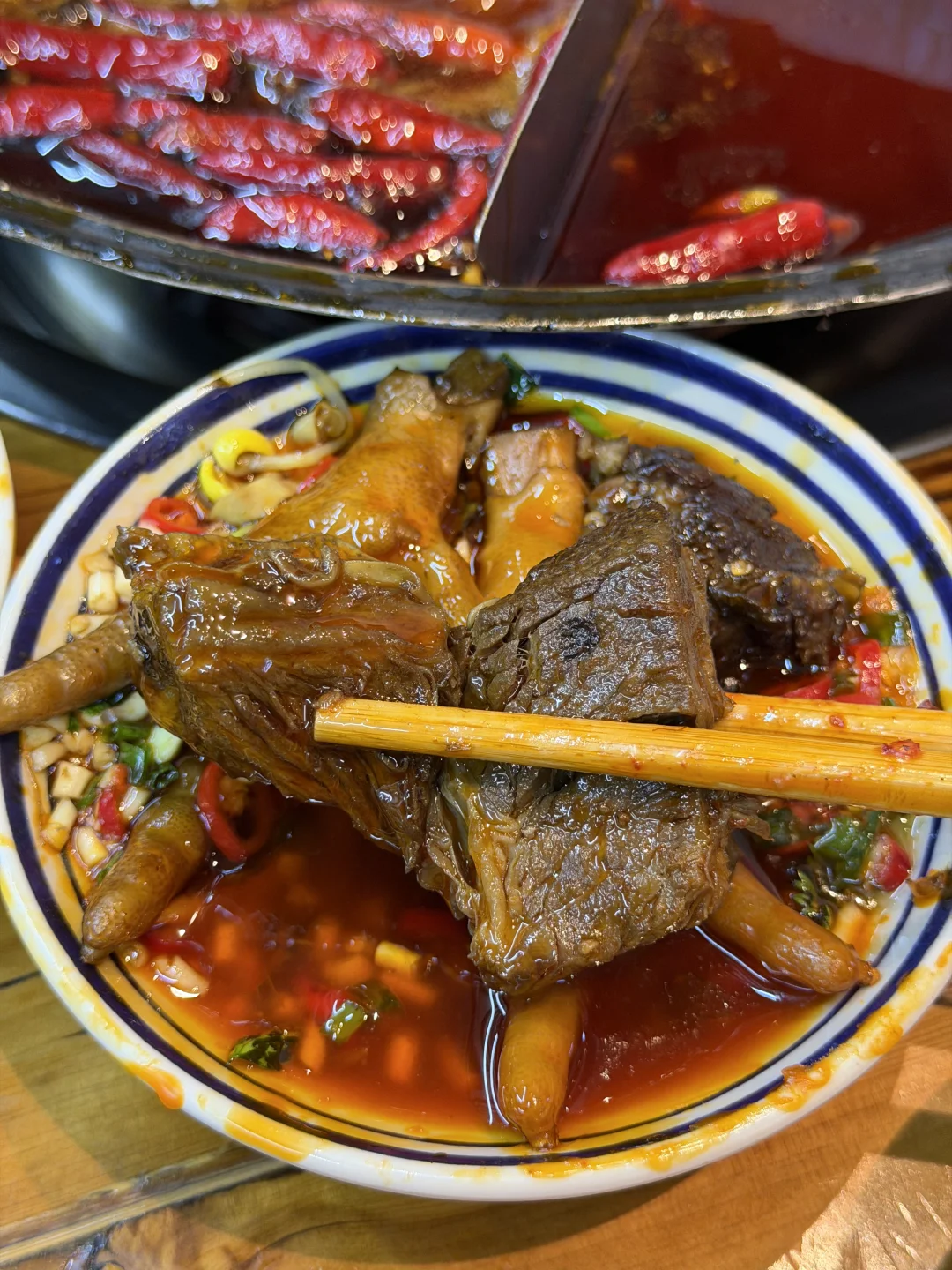 成都本地人都爱吃的社区火锅,来吃的几乎都是附近的居民,一到饭点就排满了人,市井气息超级浓烈啊啊啊啊!!! 他家的牛油锅底真的涮什么都好吃,和好朋友点了满满的一大桌,耙鸡爪和发鱿鱼都超级好吃!!真的是我会去无数次的小店~