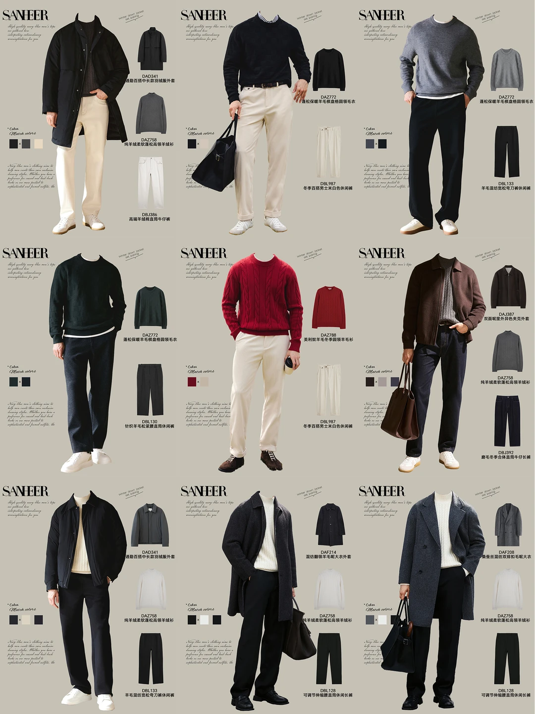 男生秋冬还在穿得邋里邋遢?这 9 套高级感穿搭模板直接把质感焊在身上,从日常通勤到休闲出街,每套都戳中审美点,照着穿轻松变身氛围感型男~ • 中长款羽绒 + 羊绒衫 + 牛仔裤,暖男通勤风一键 get,上班穿被夸品味好; • 羊毛毛衣 + 米白休闲裤,轻熟感拉满,约会穿这套直接拿捏心动信号; • 还有复古夹克、毛呢大衣各种风格… 每件单品都能互相搭配,衣橱利用率直接拉满! 秋冬别再纠结穿什么,跟着这套穿搭公式走,质感男生就是你~