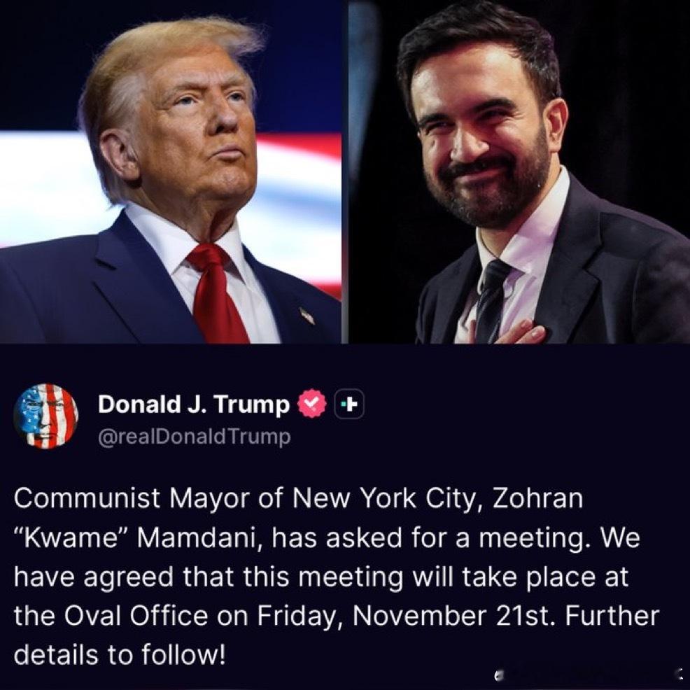 【黄金时代】川普透露,11月21日,将与纽约市长马姆佐尼会面。川普与侯赛因奥巴马对列,揭露马姆佐尼中间的名字叫“夸梅”川普:纽约市的“康谬尼斯特市长”佐赫兰·“夸梅”·马姆佐尼要求举行一次会面。我们已达成一致,这次会面将于 11 月 21 日星期五在椭圆形办公室举行。后续细节敬请关注!