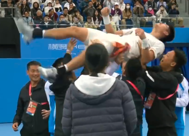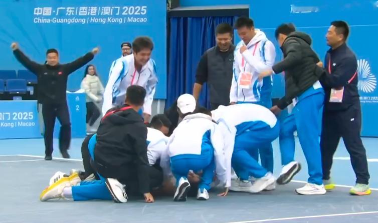 2025网球男单决赛,吴易昺6-0、1-6、6-4战胜商竣程,摘得金牌。