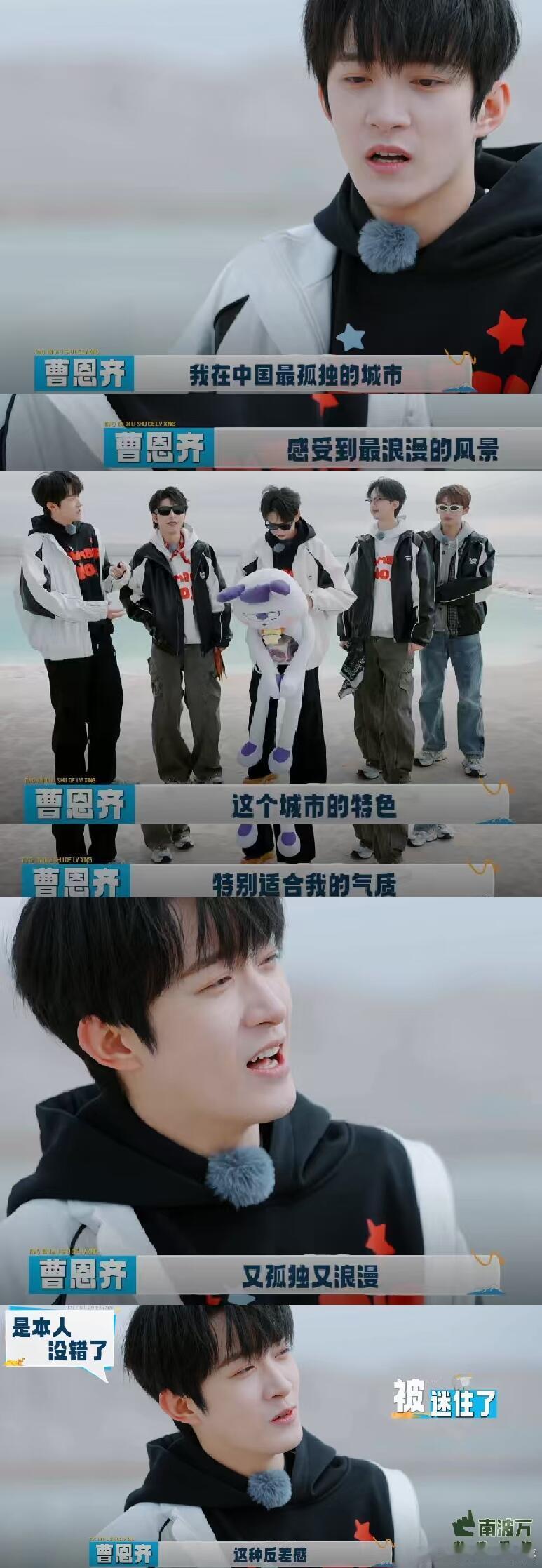 好像这种话只有恩齐说,我才会觉得有趣可能是因为颜值在,而且又觉得他本人很有趣,所以觉得他这样式说话好有意思感觉现在不是大家在“玩”恩齐,是恩齐在“玩”大家了,小齐直接上手了有种逗着逗着,兔子变魔丸的感觉曹恩齐|跳进地理书的旅行2025|