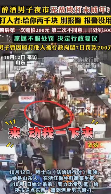 严查到底!一外地女子在浙江做生意,晚上让智力低下的弟弟去夜市送货,结果被醉酒男故意找麻烦,不仅多次殴打小伙,还扬言报警也没用!报警后,警方做出罚款500元、不拘留的处罚,女子听后坚决不同意 小宝小时候发过一场高烧,抢救不及时,引发脑炎,导致智力受损。家里大大小小的事都落在程女士身上。 别人家的少女正想着读书、谈恋爱的时候,她在想的是:今天谁能把小宝看一会儿,明天菜钱够不够付摊位费。 但她从不埋怨,带着弟弟走南闯北,就是为了给他找个能立住脚的地方。在浙江落脚后,她靠着勤快和实诚,逐渐在市场站住了。 周围摊贩都知道她的苦,也知道她的倔:她总说“弟弟是一辈子的”,甚至在谈婚论嫁时,她对未来婆家提出的第一个条件就是——弟弟必须能跟她一起生活。 她说:“彩礼可以少,但小宝不能丢。” 这几年生意好了些,她在夜市也摆了个摊,给周边小餐馆送菜。那天晚上客人突然多了,她忙得分不开身,看着小宝站在摊位旁,眼巴巴等着插手,她心里也挣扎。 最终还是摸了摸他的头:“宝,你帮姐姐去夜市口把这两袋菜送到‘老周烧烤’,你知道的那个老周。”小宝听到任务,立刻像被夸奖的孩子一样点头:“我去!我知道!” 程女士站在摊前,还不放心地看了他好几眼。 夜市灯光闪闪,烟火味四散,人声鼎沸。小宝抱着两大袋青菜挤进人群时,一个醉酒男子正扶着桌子摇晃着站起来。他喝得脸通红,情绪明显不稳定。 小宝不小心被他绊了一下,袋子碰到他腿上。醉酒男先是愣了一下,随即拍桌子骂道:“你——你撞我?” 小宝被吓住,连连摆手:“没撞……对不起,对不起,我去送菜……” 他话还没说完,就被醉酒男一把推倒在地。周围人一惊,有人皱眉,但看醉酒男气势汹汹,也没人敢贸然上前。 醉酒男见小宝不敢吭声,反而更加嚣张,提脚就踢:“你装什么?你是不是瞧不起我?信不信我让你躺这儿起不来?” 小宝抱着头缩成一团,只重复一句:“不敢……对不起……姐姐等我回去……” 醉酒男听到“脑子不好使”反而更来劲:“脑子不好?那打你也不用负责吧?” 说着又扬手扇了小宝一巴掌。 就在此时,一旁烤串摊的大哥实在看不下去,丢下手里的夹子,冲上去拉住醉酒男的手臂:“你干啥?人家孩子都有困难,你欺负他算什么本事?” 醉酒男被拦下后更恼火,竟反手给了大哥一个响亮的耳光。周围客人发出惊呼。 大哥被打懵了半秒,但很快咬着牙挡在小宝前面:“你有病吧?” 醉酒男却越打越疯,吆喝着:“报警?你报啊!我告诉你,今晚谁拦我,我照打不误!我朋友都是……” 话没说完,他又冲上去挥拳,大哥为了护住吓得发抖的小宝,被他连打好几下。旁边人这才赶紧掏手机报警,夜市摊贩也纷纷围过来制止。 很快警车赶到,醉酒男这才瘫坐在地上,嘴里嘟囔着:“没事……我又没打死谁……” 小宝抱着膝盖蹲在一旁,眼睛因为恐惧而发红。 程女士赶到派出所时,小宝正窝在椅子上,像孩子一样不断重复:“姐姐,我没做好,我没送好菜……” 她心里酸得不行,一把把他抱住:“不怪你,不怪你。” 民警将调查结果告诉她:醉酒男因殴打他人,被处以罚款500元,不予拘留。 程女士一听,整个人都愣住了:“他打人那么狠,我弟弟智力低下,他还故意欺负他,为什么不拘留?以后他再喝酒再打人怎么办?那大哥也是被凭白打的!” 民警解释按轻微伤鉴定和当事人情况处理,但程女士越听越心寒。 她强忍着情绪问:“那我们怎么办?我们只能被打?只能认倒霉?” 沉默片刻后,她说得很坚定:“我不同意。我一定要申诉。我弟弟不能随便让人欺负。” 旁边的大哥也赶来录口供,他捂着被打肿的脸,对程女士说:“你们别怕,该争取的就争取,我们都看到的。不能纵着这种人。” 事情传到网络后,引起许多网友关注: “这么欺负人太过分了!” “醉酒不是挡箭牌!” “姐姐这么多年保护弟弟,换来的却是这样的对待,太心酸了。” 有人说,这500元罚款不是处罚,是羞辱。 有人说:“如果不是那位大哥,小伙子可能还要被继续打。” 也有人呼吁:“弱者不能靠偶然遇到的好人保护,制度要让他们能站得住脚。”