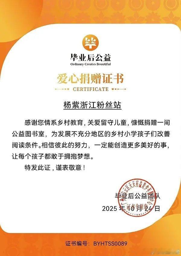杨紫粉丝默默做公益了,给发展不充分地区乡村小学同学们捐赠图书室以及拨善款