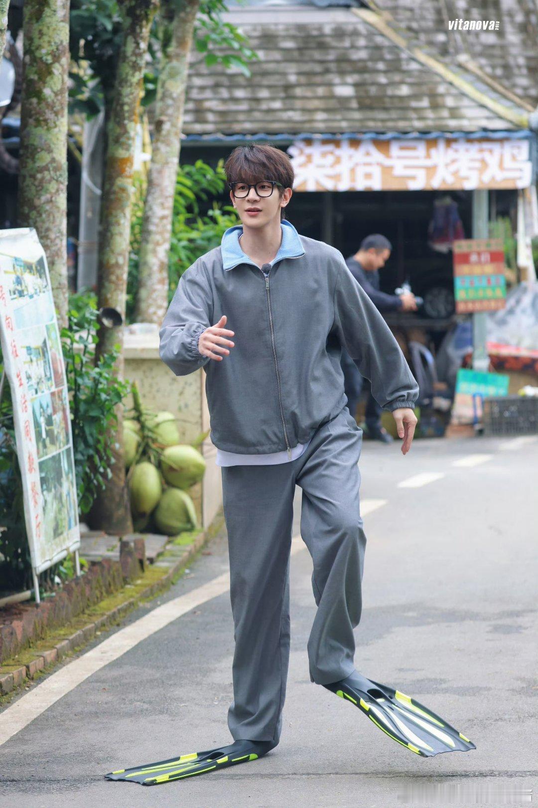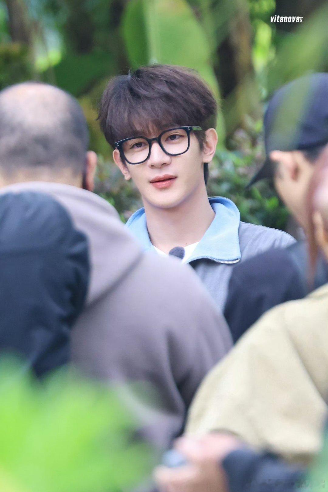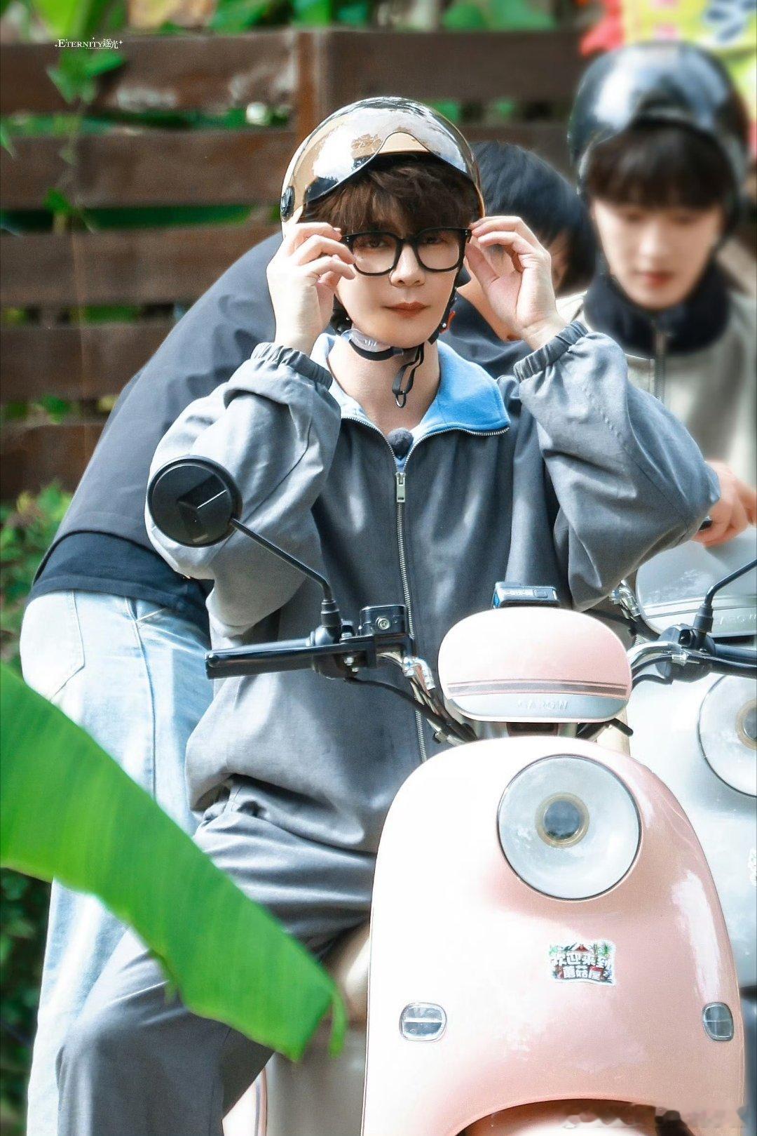 夏之光综艺录制骑车路透,这个卷发和黑框眼镜,好嫩啊