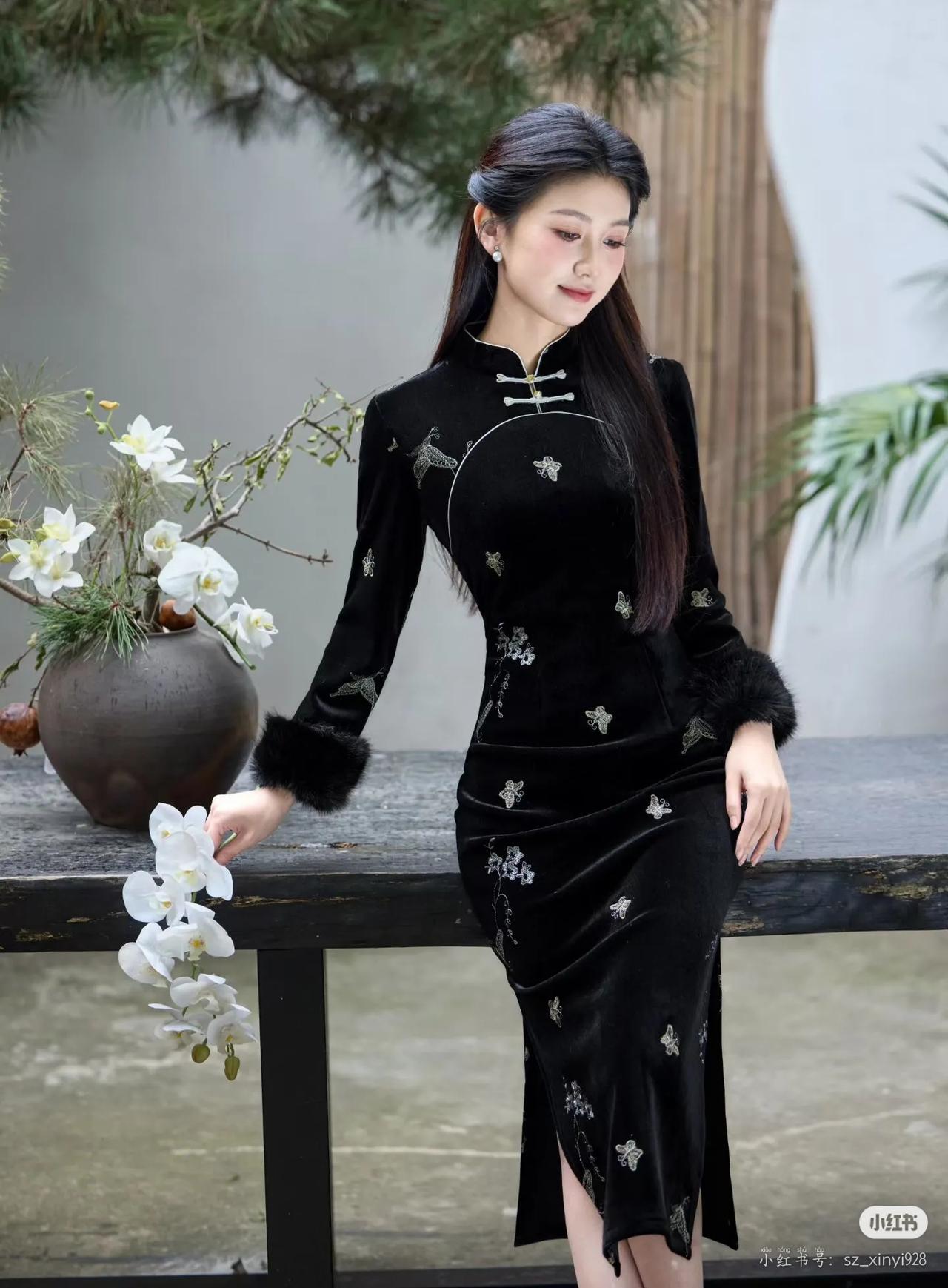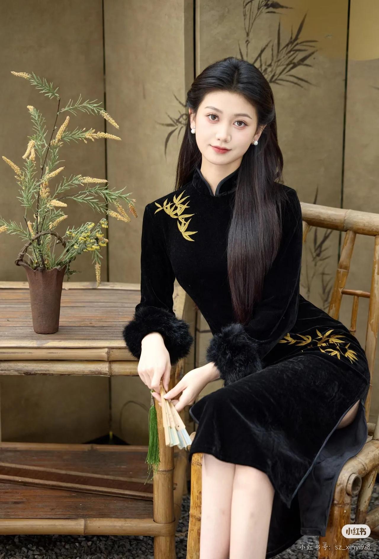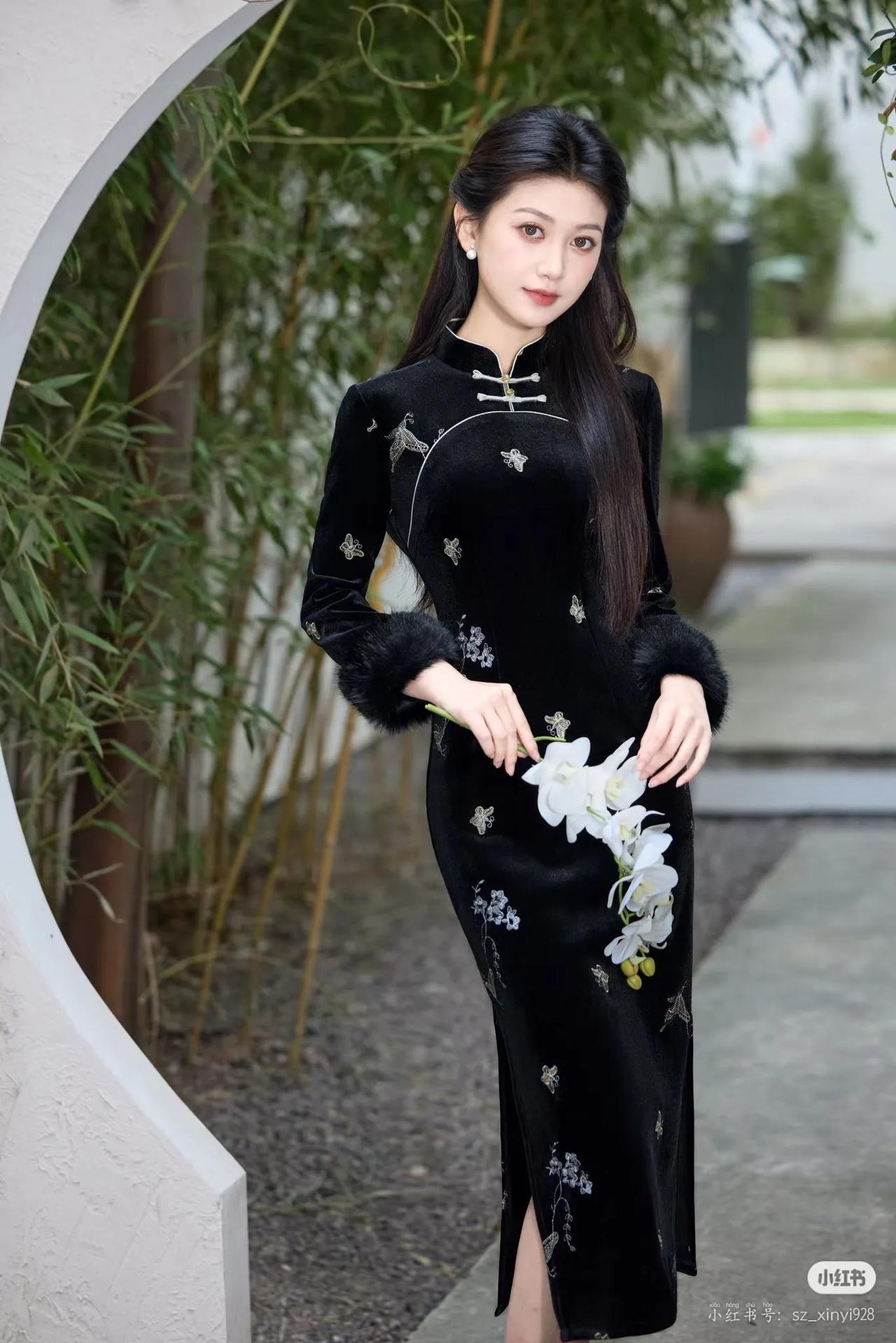 中式旗袍,是流动的东方诗。立领盘扣锁住温婉,斜襟勾勒曼妙曲线,开衩处藏着步步生莲