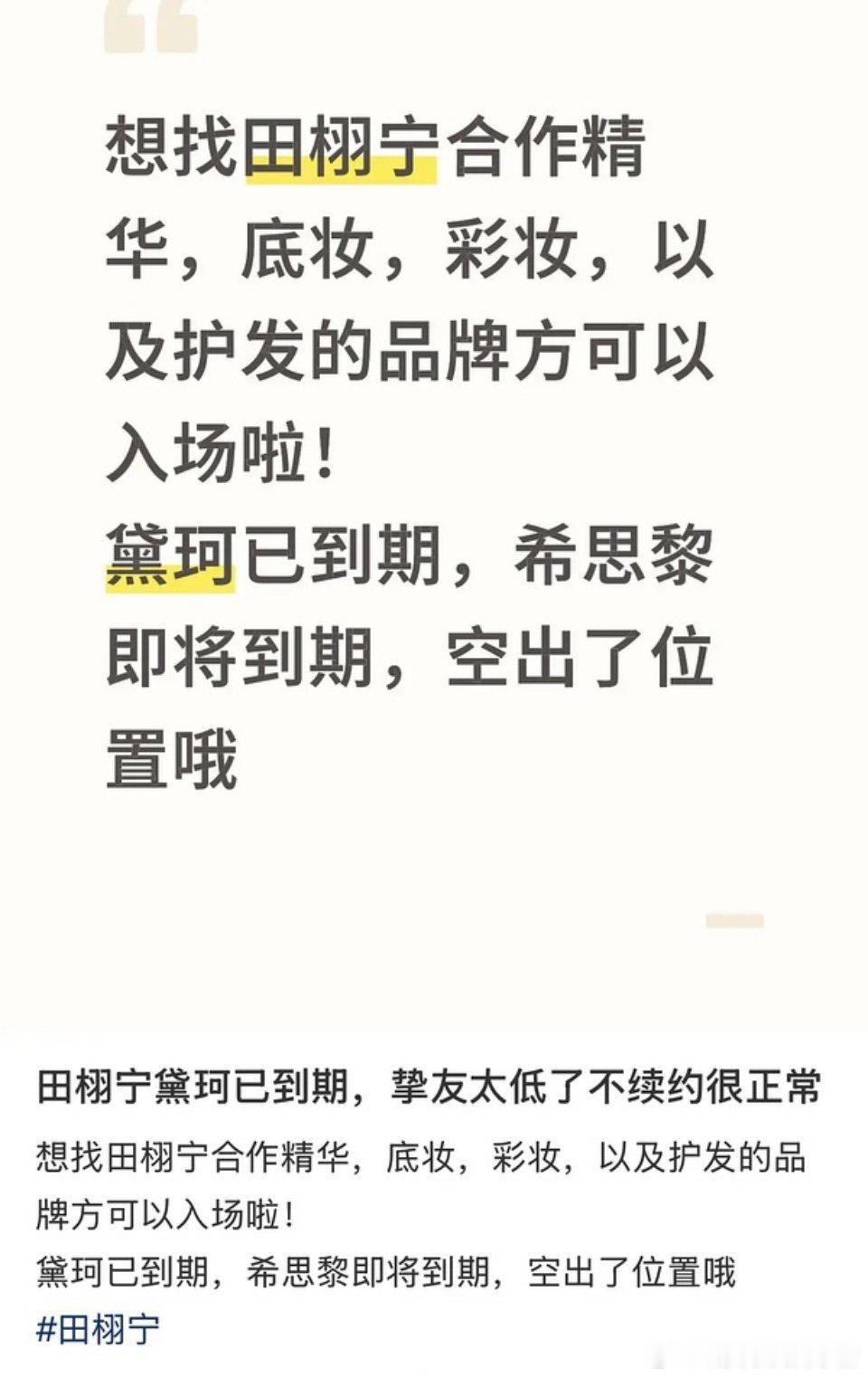 田栩宁黛珂以及希思黎都到期了,粉丝觉得挚友 title 太低了留出空位要更高的,要求品牌方可以入场了