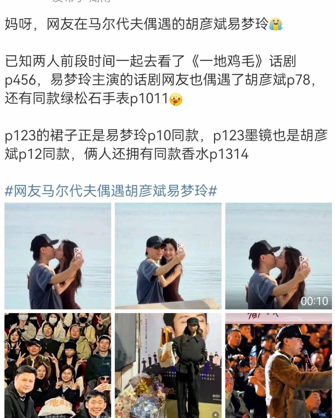 盘一下胡彦斌易梦玲恋情的时间线:9月共同参加郝蕾表演班的结业10月胡彦斌和妈妈去了女方话剧《诛》的现场被偶遇11月胡彦斌易梦玲并排观看张一山话剧《一地鸡毛》从话剧现场同框、同款情侣手.表,到度假行程完美重.合,现在才发现原来一切都有迹可循。而且易梦玲一直都喜欢音乐才子,胡彦斌一直喜欢年轻美女,都没变过,这不正是彼此的理想型吗