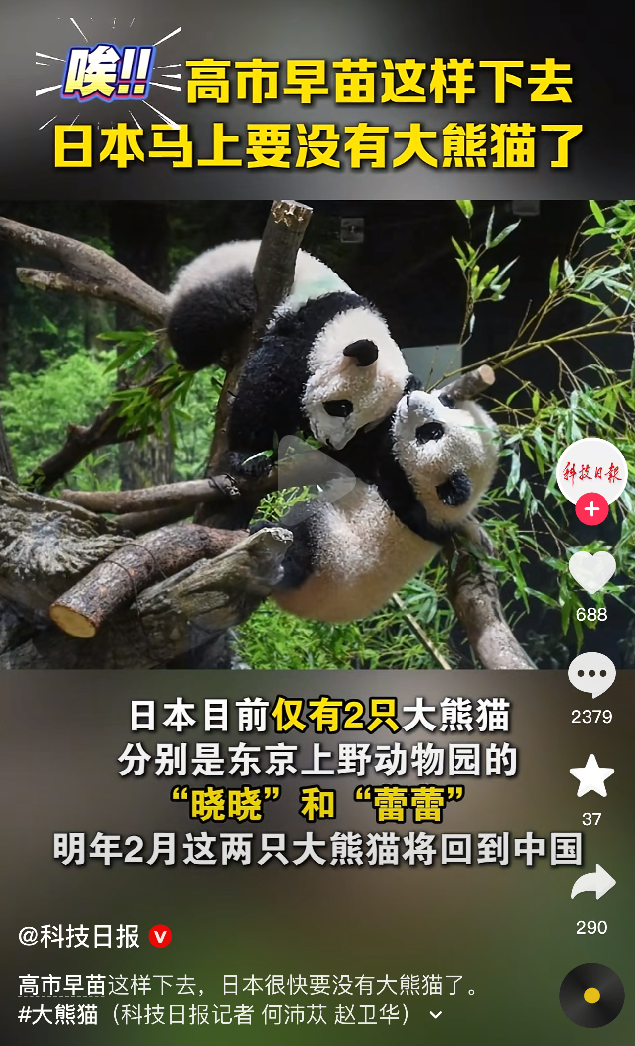 媒体:高市早苗这样下去,日本很快要没有大熊猫了