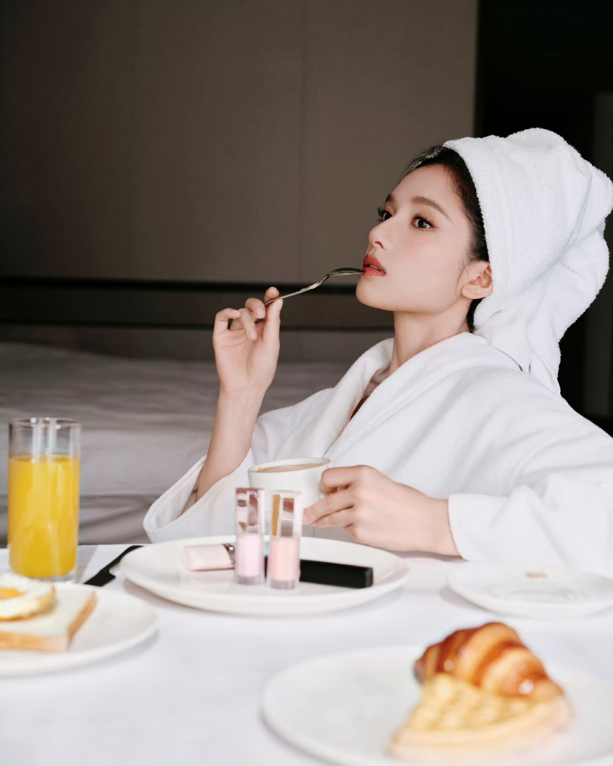 这么简单的浴袍张婧仪都这么美,完全女王!这组想法真好,眼前一亮