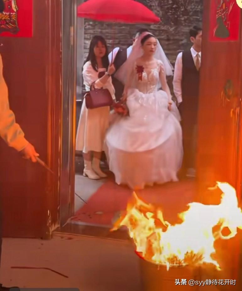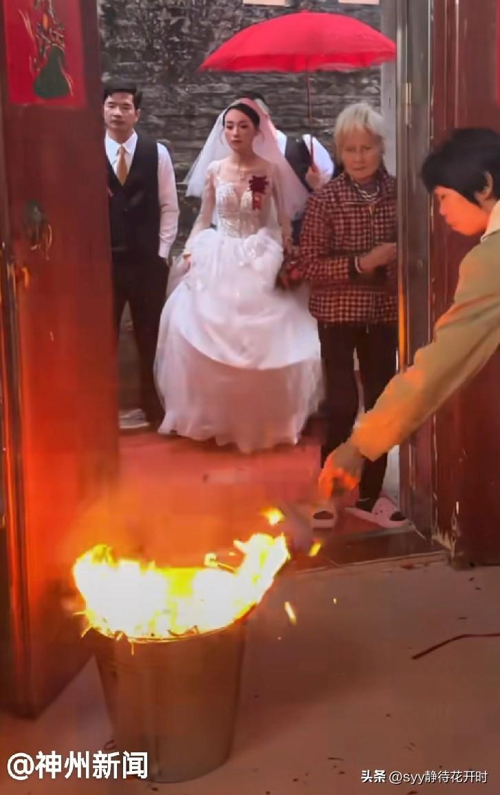 天哪!这是哪里的风俗习惯啊!新娘穿着漂亮的婚纱,婆家人却让她跨过烈火中烧的火盆!这是下马威,还是要人命啊! 新娘子在自己家,就是父母的掌上明珠小宝贝,怎么刚到婆家门就要过刀山下火海啊?婆婆也是女人,也是别人家的闺女,怎么熬成婆后心灵就扭曲了呢!友友们,这样的婚还有必要结吗?
