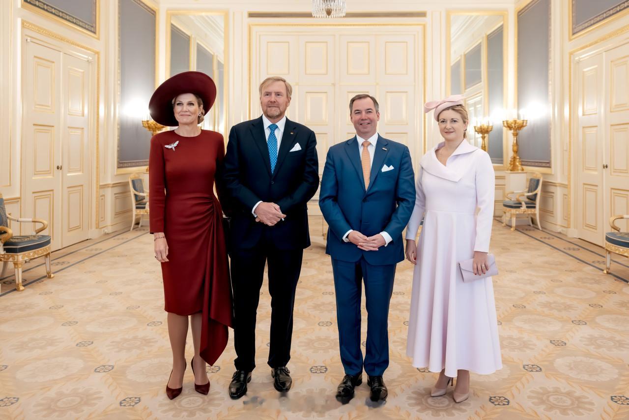 11.19 卢森堡大公纪尧姆五世和大公夫人斯蒂芬妮访问荷兰,继续遛弯之旅斯蒂芬妮裙子来自safiyaa,玛克西玛披肩来自华伦天奴,里搭裙子natan