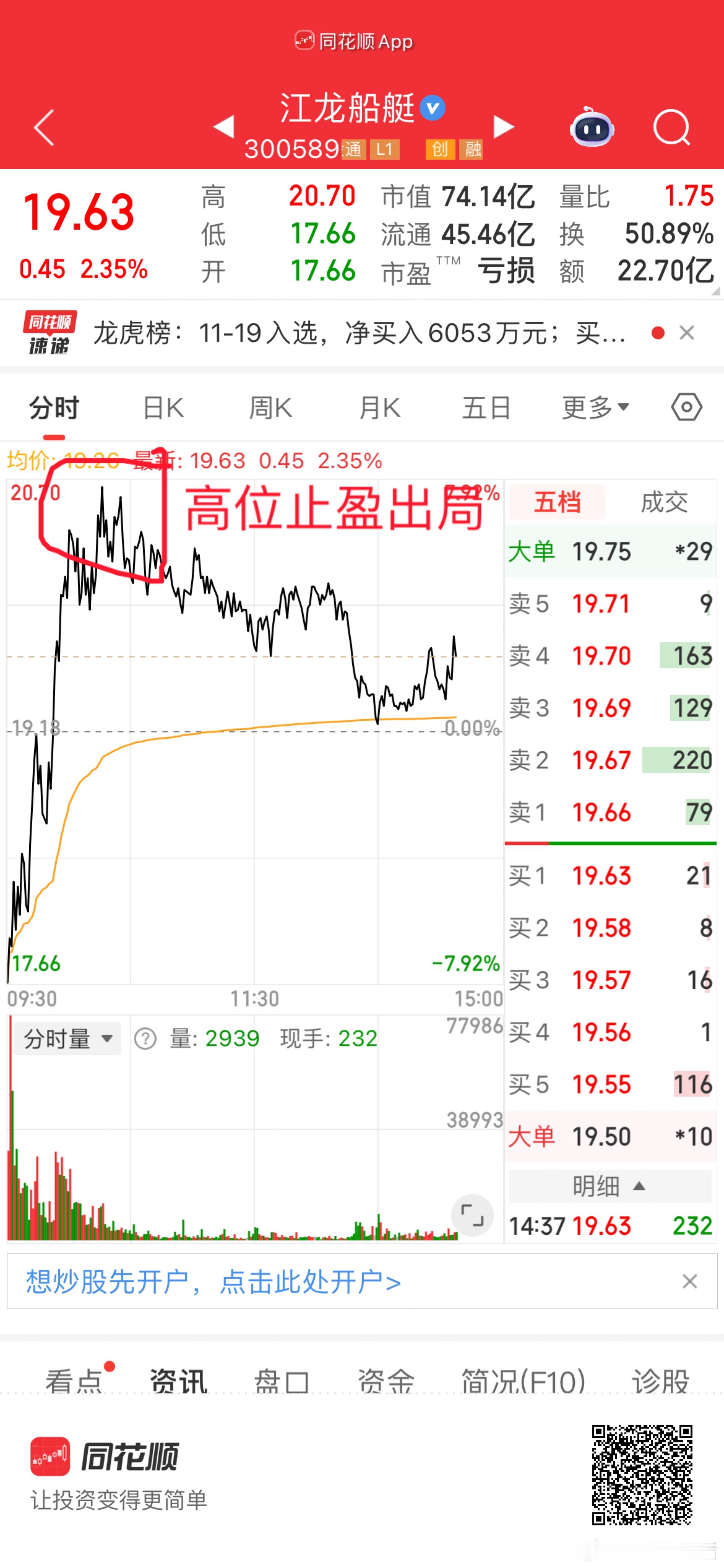 好消息,18号早盘里面关注的$江龙船艇sz300589$现在盘中趋势美丽,恭