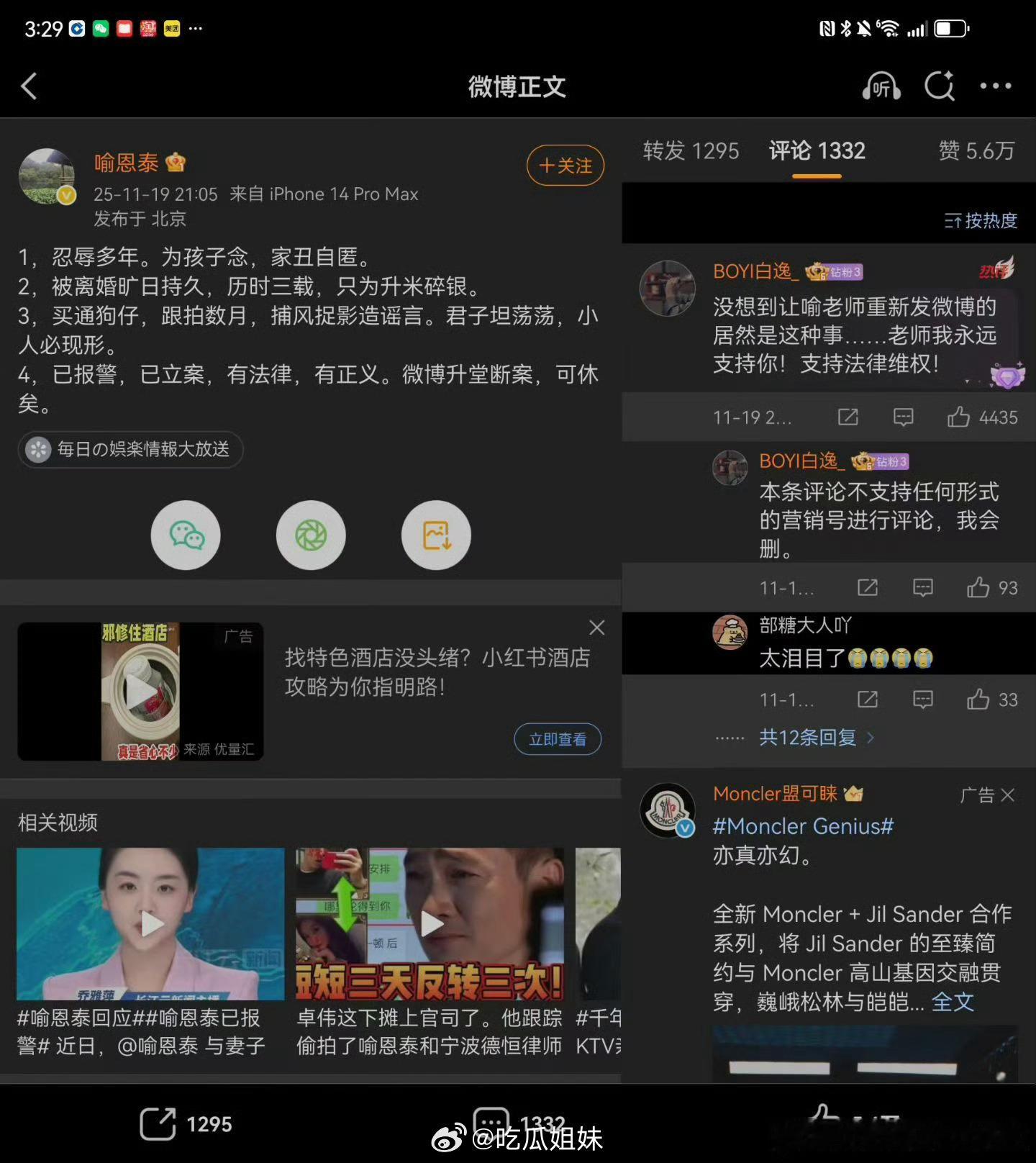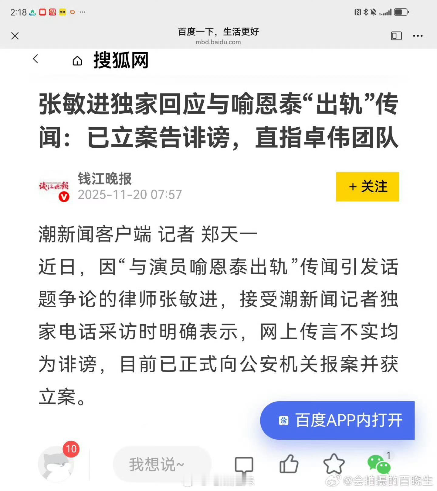 卓伟发朋友圈回应,称喻恩泰不值得跟拍数月,只拍了几天。喻恩泰不是顶流没有跟拍数月的价值