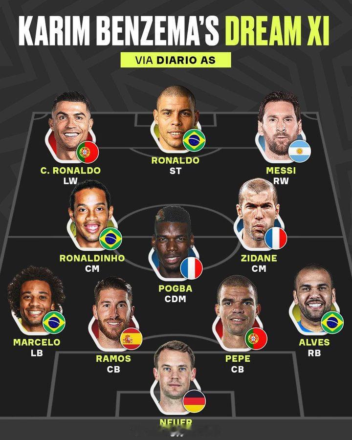 ,选出他心目中的史上最佳11人阵容,他将自己、莫德里奇和伊涅斯塔放在替补席上面。