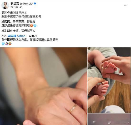《仙剑》"阿奴"刘品言生女19日,刘品言、连晨翔夫妇官宣得女喜讯。刘品言说“欢迎你来到这世界上,谢谢你选择了我们成为你的父母。脸圆圆,鼻子高高,脚长长,应该是冲着漂亮来的吧😍”。 连晨翔更激动宣称:“从第一眼看到你开始,我承认我已经是女儿傻瓜。”两人文字中都充满为人父母的喜悦和深深爱意。今年6月,刘品言官宣与连晨翔结婚&怀孕,相关话题词随即冲上微博热搜榜。小两口决定暂时不办婚宴,因为预产期在年底,目前两人已全心投入迎接新生命的准备。据公开资料,刘品言1988年8月8日出生,演员、流行乐歌手、节目主持人,女子演唱组合Sweety成员。2002年,刘品言与曾之乔一起组成Sweety演唱组正式出道。2005年,因主演仙侠剧《仙剑奇侠传》中“阿奴”一角崭露头角。2007年,凭借青春偶像剧《绿光森林》在内地赢得高人气。知名作品还有《西街少年》《华灯初上》等。连晨翔,1992年1月3日出生,歌手、演员。2013年,在服饰店打工时被星探发掘出道。代表作品有《终极恶女》《浪漫输给你》《燕云台》等。