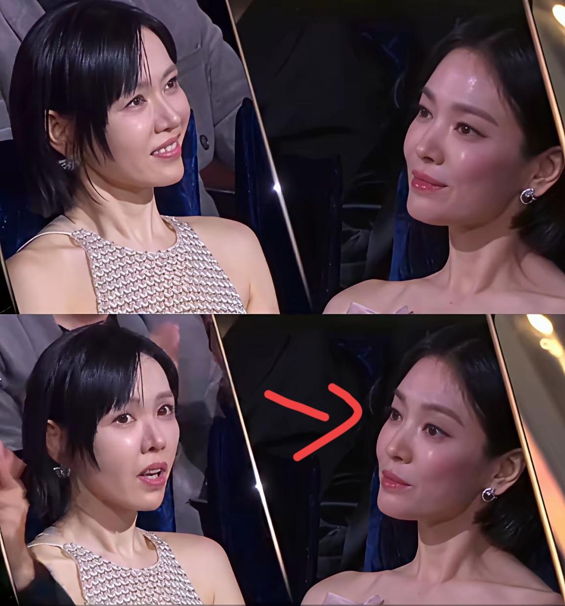 什么叫做表情管理 看看宋慧乔就懂了! 孙艺珍二封影后,宋慧乔直接连装都不装,脸上大写的敷衍! 孙艺珍已经两轮大满贯了, 宋慧乔前男友和现任妻子不仅双双拿了影帝,还在台上秀恩爱!!爽文大女主,事业家庭双丰收! 脸上隐忍的表情就像吃了很多的苦!小说都不敢这样写!孙艺珍已经拿了青龙,大钟,百想奖! 也许在后悔自己的《黑修女们》成片不佳! 宋慧乔 孙艺珍