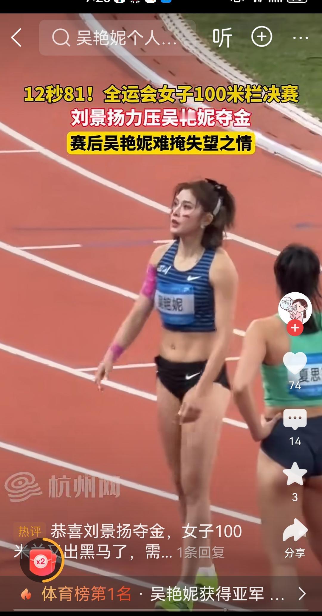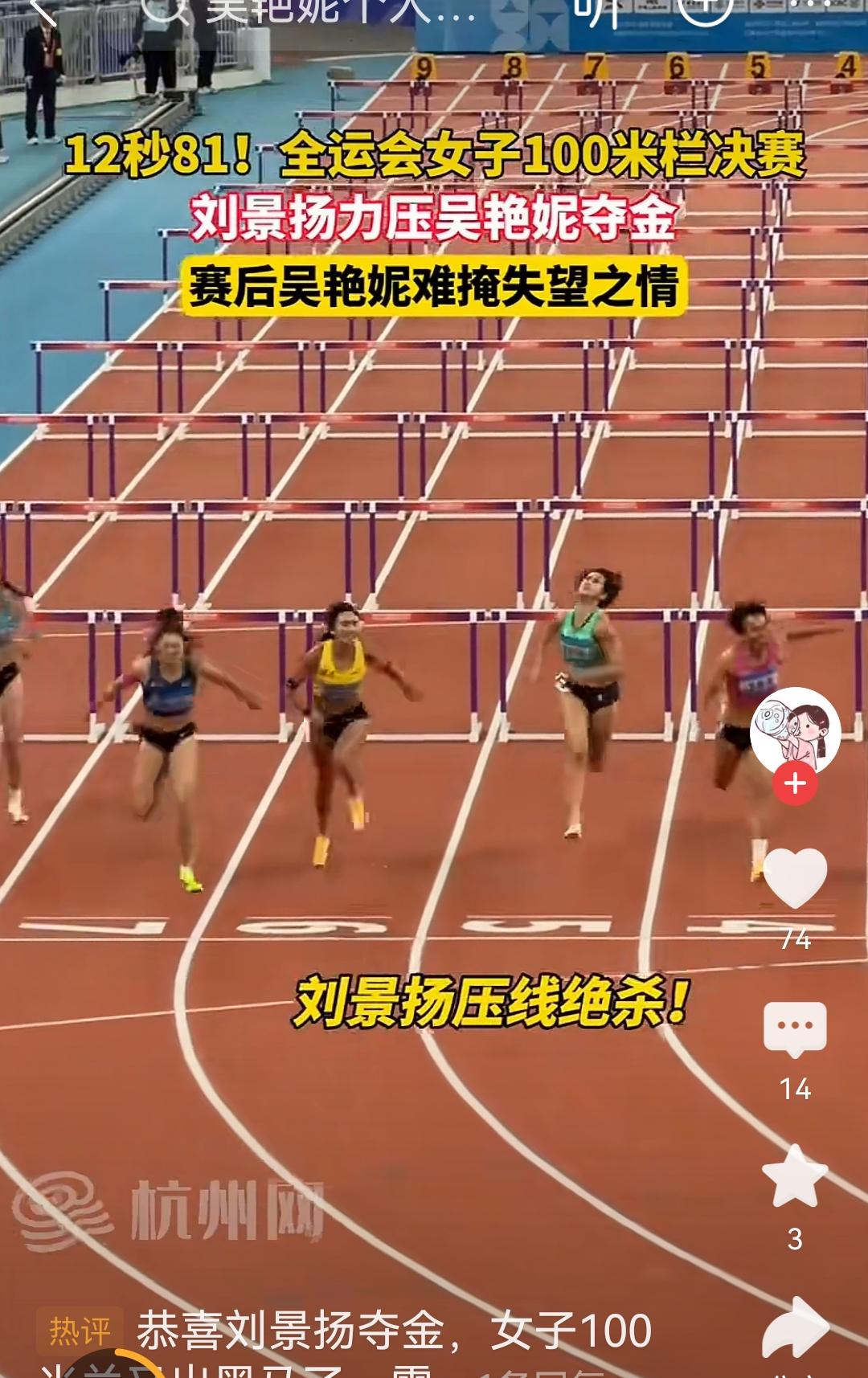 刘景杨夺金并非偶然 瞧瞧她腿部的肌肉 再瞧瞧吴艳妮的 便知她一直在默默奋进 挥洒了无数的汗水,咽下了无数的泪水 终于收获了耀眼的成绩 恭喜她