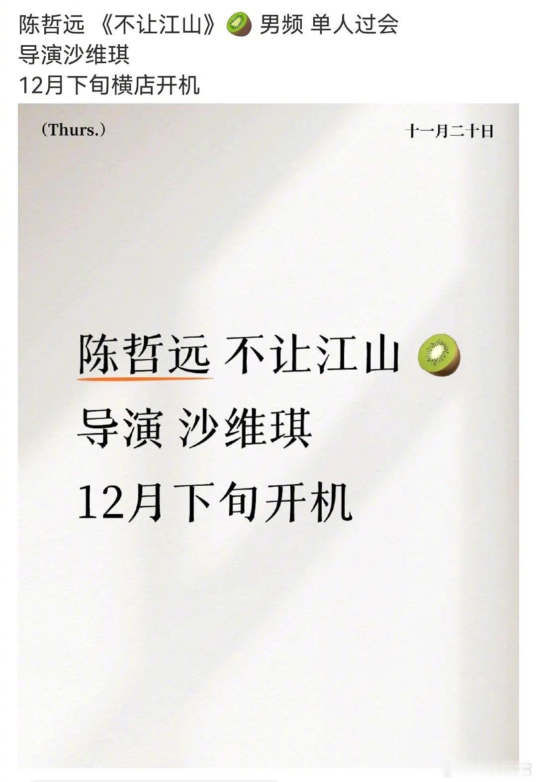 🍉男频《不让江山》主演陈哲远,12月下旬横店开机