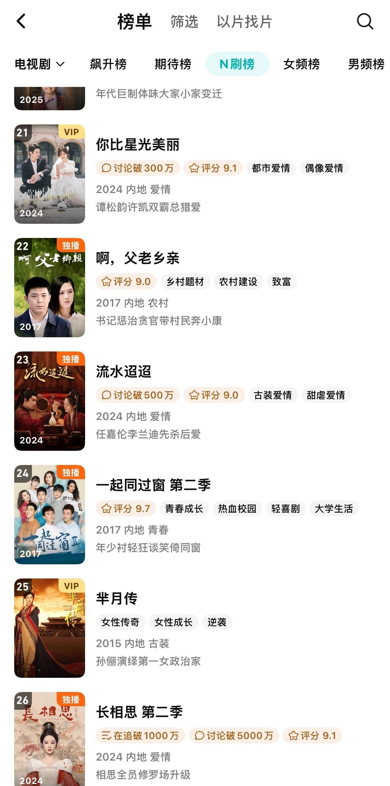 流水迢迢又进了腾讯N刷榜啊 !不愧是年榜钉子户,N刷榜常客,任嘉伦你太权威了!