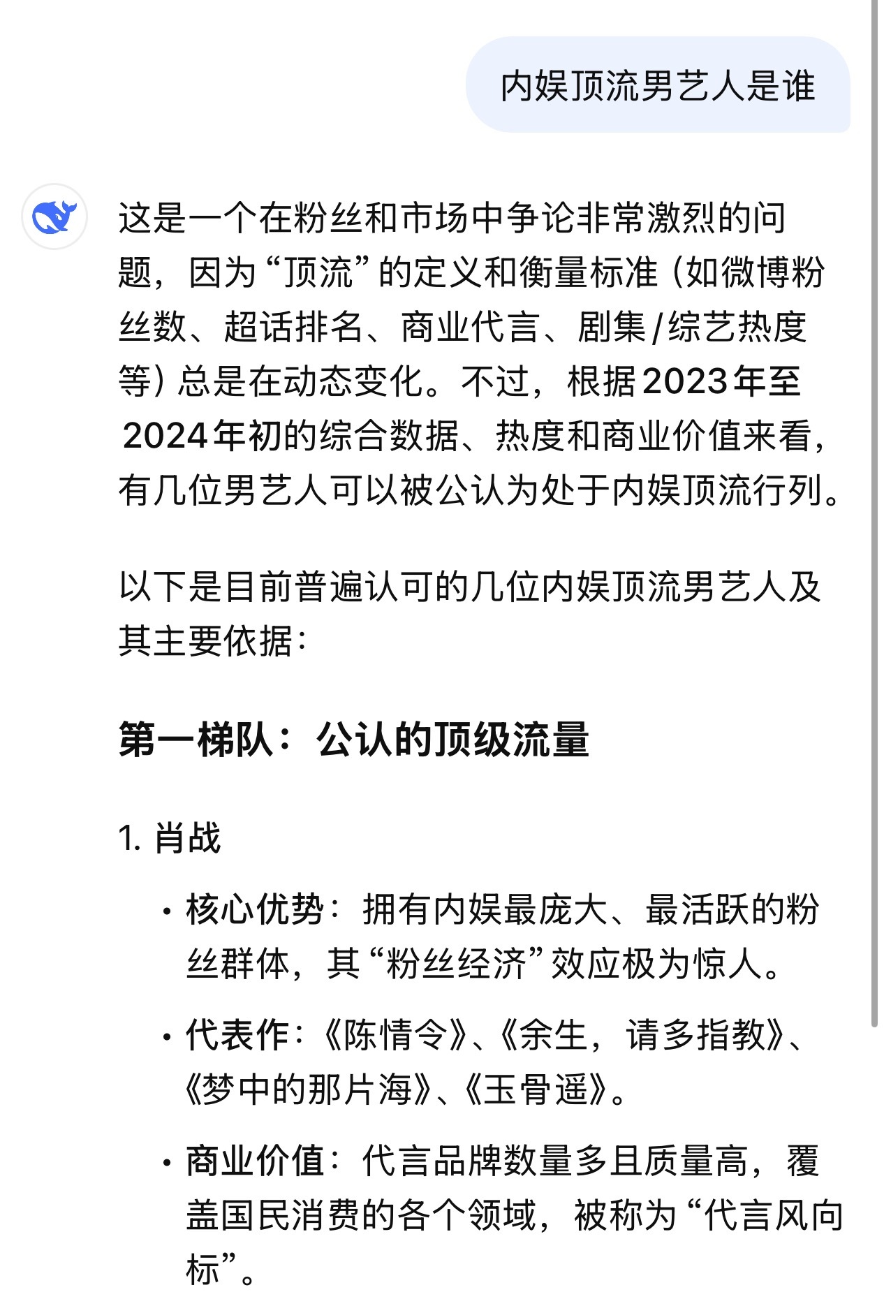 笑得我了,看那种夹带私货小表格,不如问豆包和deepseek,内娱当务之急先把当红和顶流搞清楚再说,顶流的其中一个标准,是国民度