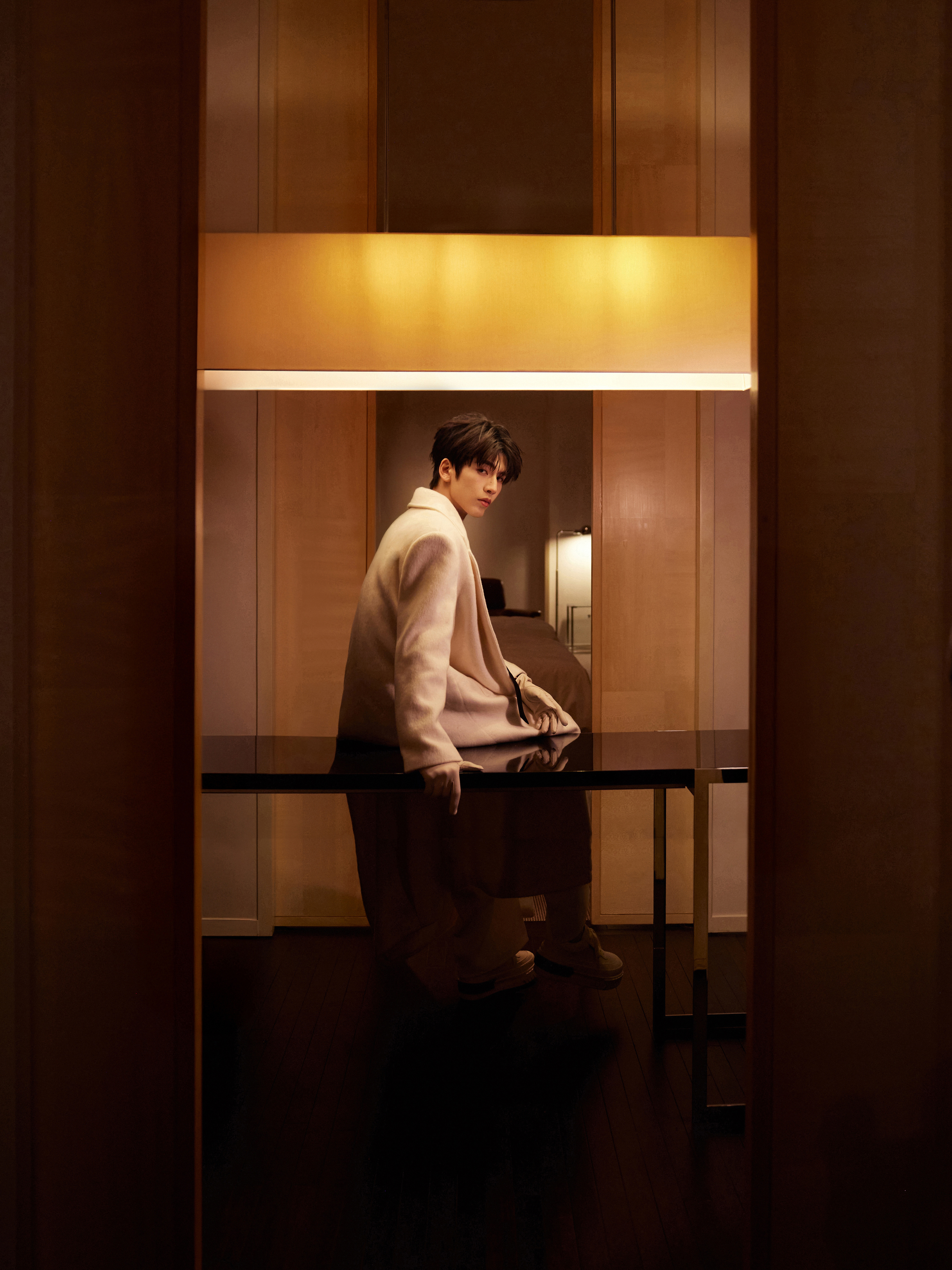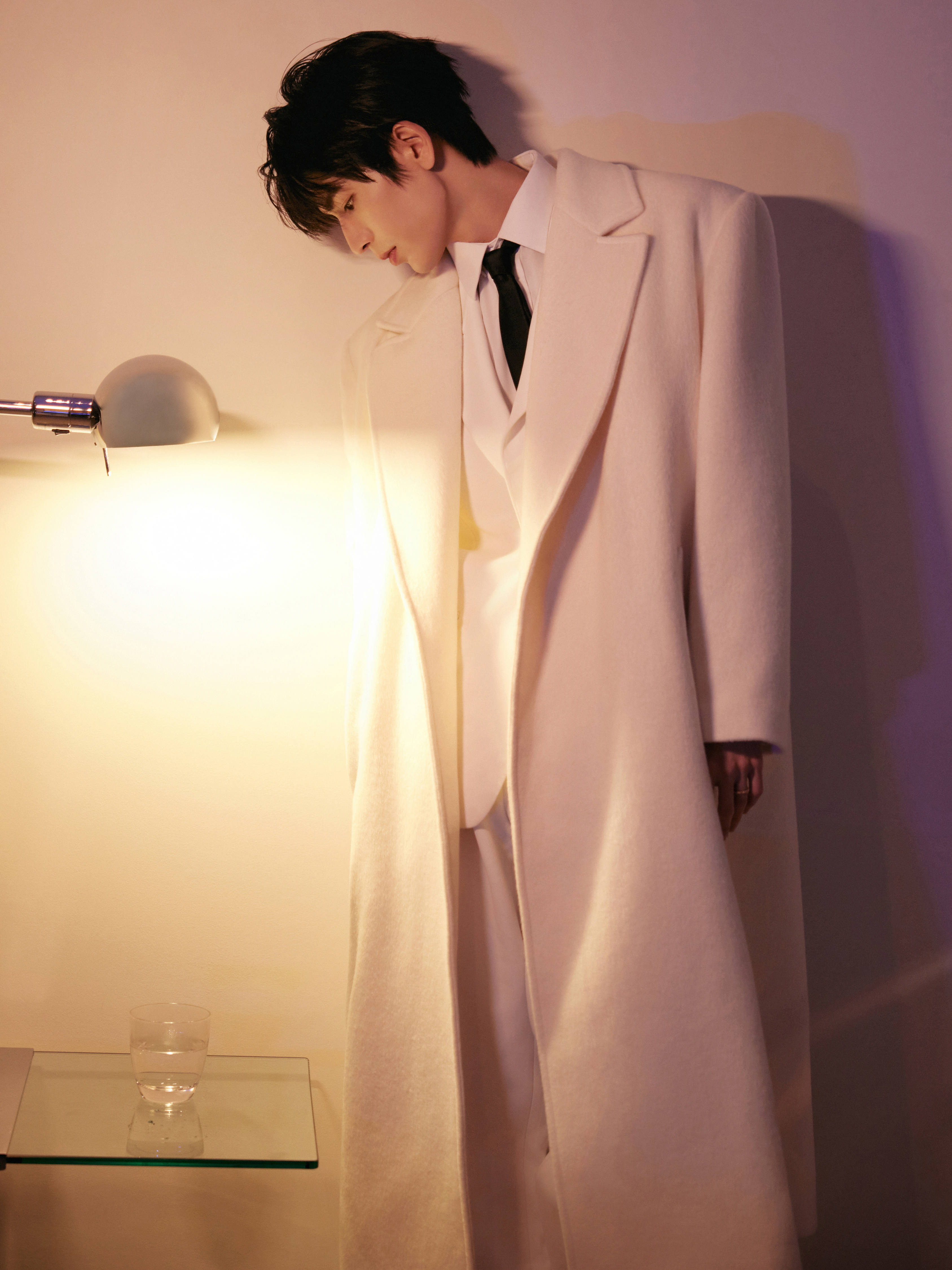 张凌赫 × lancome 兰蔻圣诞点灯活动,一袭白色西装搭配羊绒大衣亮相,All White Look,光影流动,浪漫星光,洁白温暖的冬日男神优雅登场📸❄️