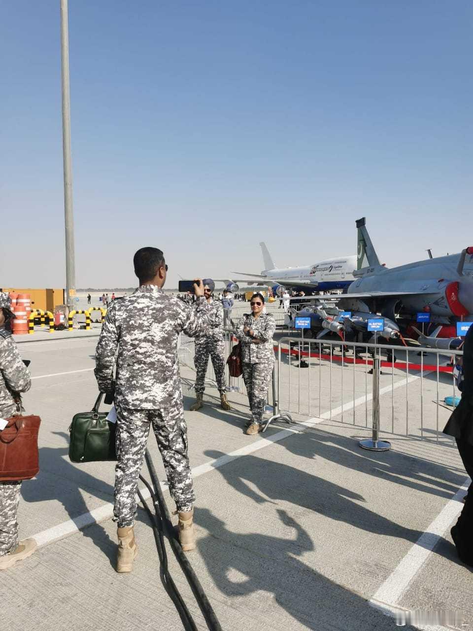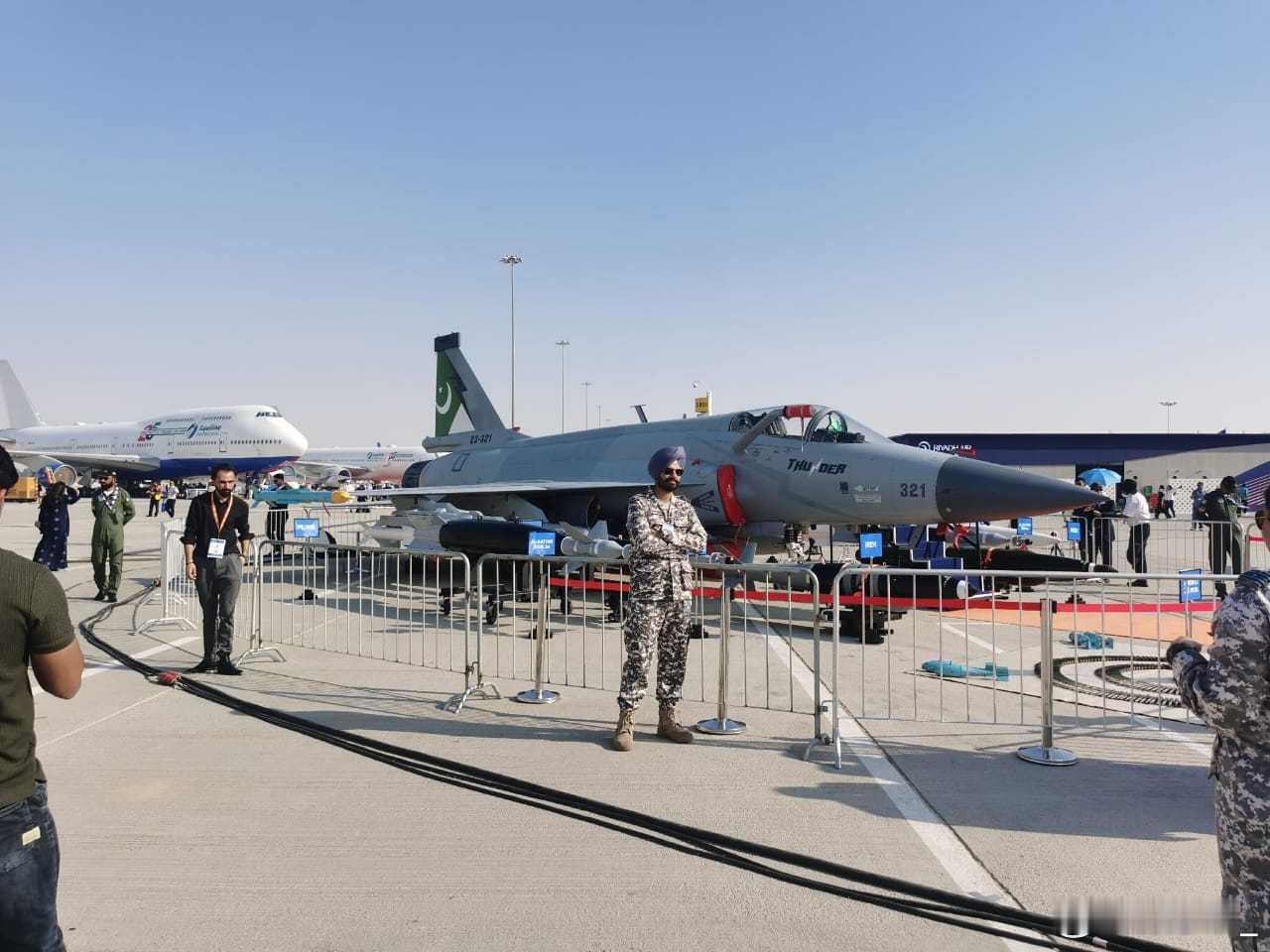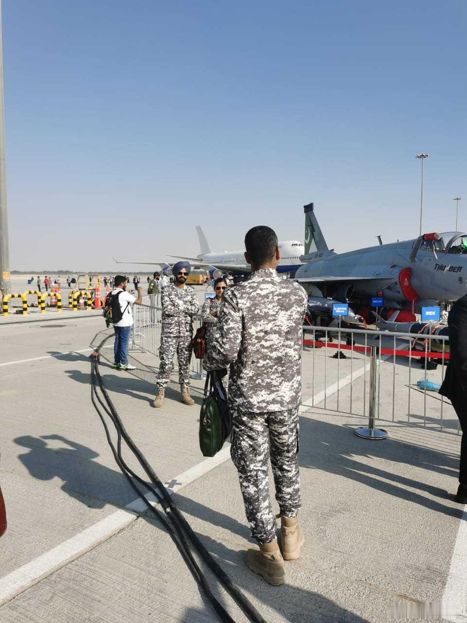 印度空军人员在迪拜航展与巴基斯坦空军JF-17C战斗机合影。此外印巴双方空军人员难得在巴方展区前“友好交流”。
