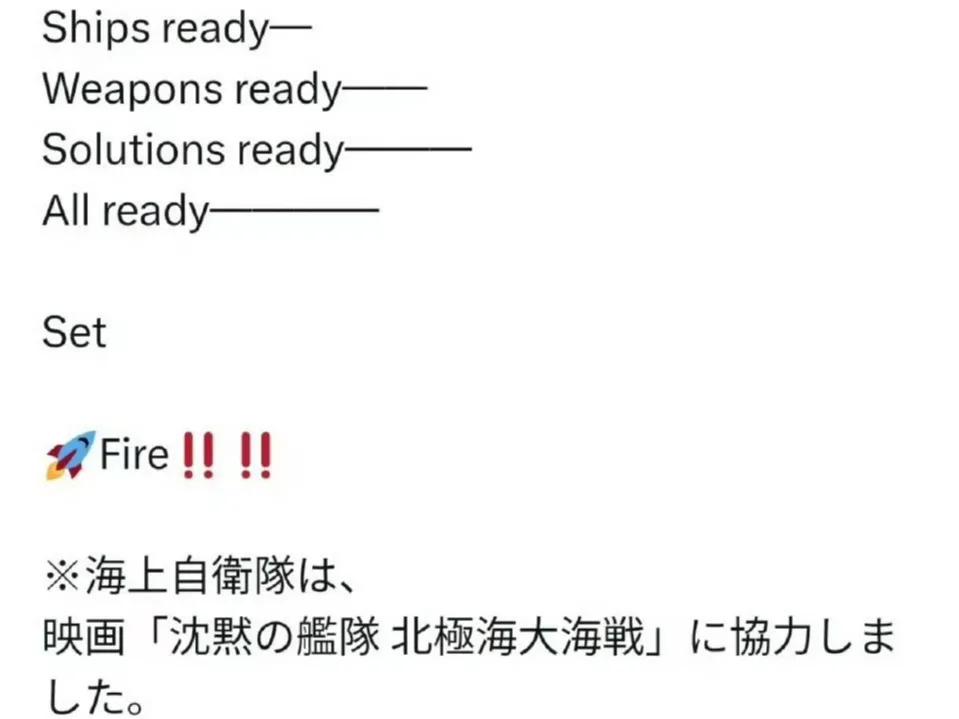 日本海上自卫队的官方社媒账号,发了条动态说“都准备好了”! 这个就十分嚣张了,网友们纷纷热议。 网友A:不明白为什么老是要等别人开第一枪? 网友B:战争谁动手先就理亏,俄罗斯就是最好例子,被逼着动手了,现在变成消耗战了,骑虎难下了,先动手的策略目前来看是下下策。 网友C:好好看看吧,这就是日本,没有丝毫反悔,还不少人天天奉劝它收回原话,可能吗?