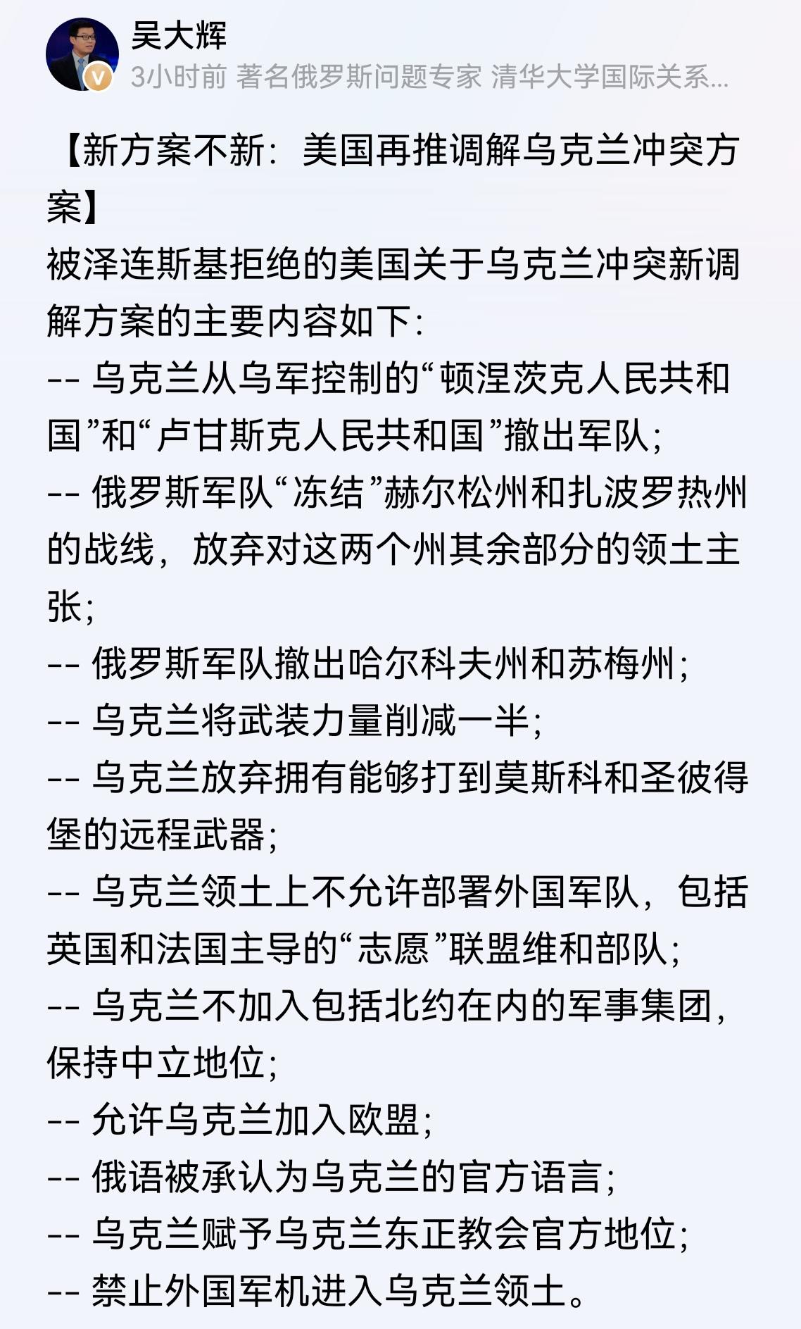 美国双管齐下,基辅、欧洲又如何应对? 美国多家媒体昨天(11月19日)报道,特朗普已批准俄乌冲突28点和平计划(主要内容见图2),该方案由特朗普的特别代表史蒂夫.维特科夫负责制定,并于昨天赶到土耳其向泽连斯基进行了通报。 该方案与泽连斯基在华盛顿拒绝的方案大同小异,这次基辅、欧洲还能拒绝吗?如果遭到拒绝,美国还有后手,除过泽连斯基亲信贪腐案外,还掌握基辅其他贪腐大案,泽连斯基该如何抉择?欧洲又该如何抉择?